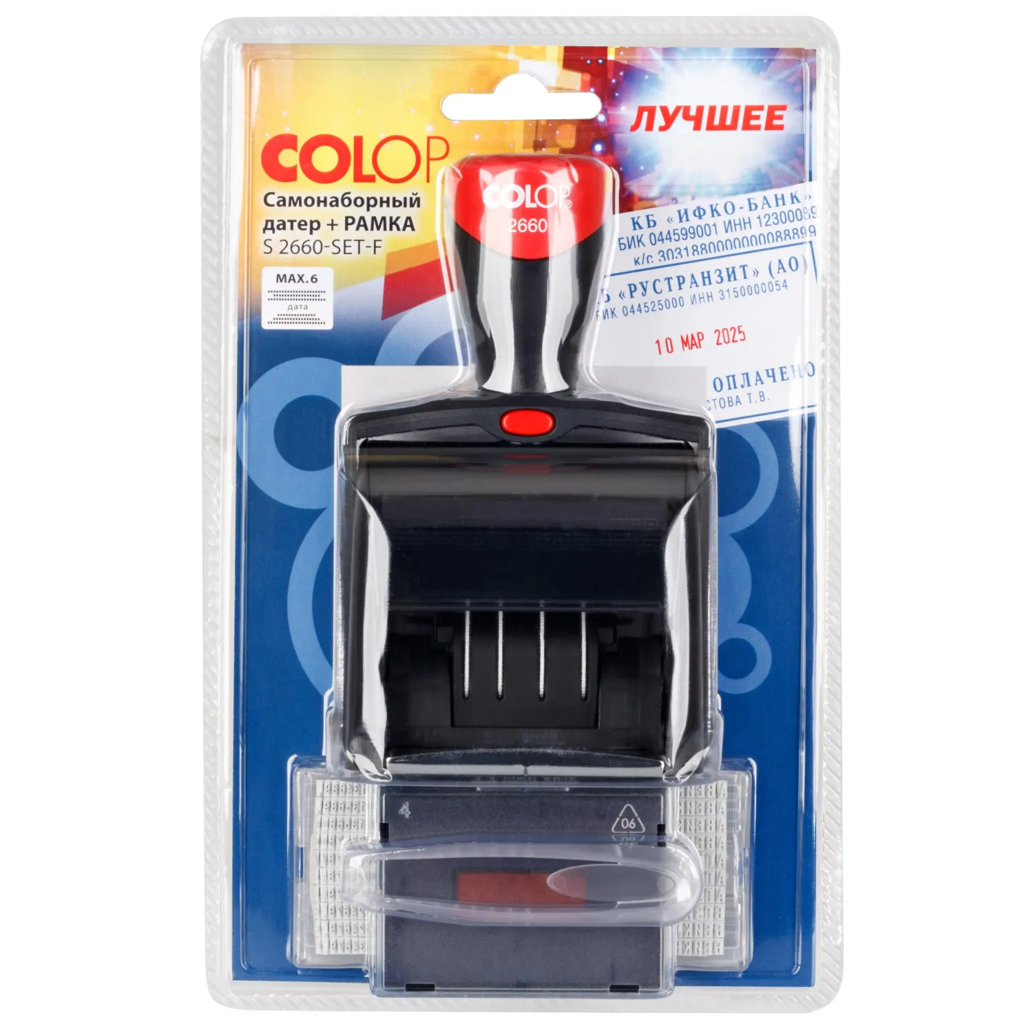 Датер автоматический самонаборный Colop S2660-Set-F (металлический, 37х58 мм, 4/6 строк, съемная рамка)