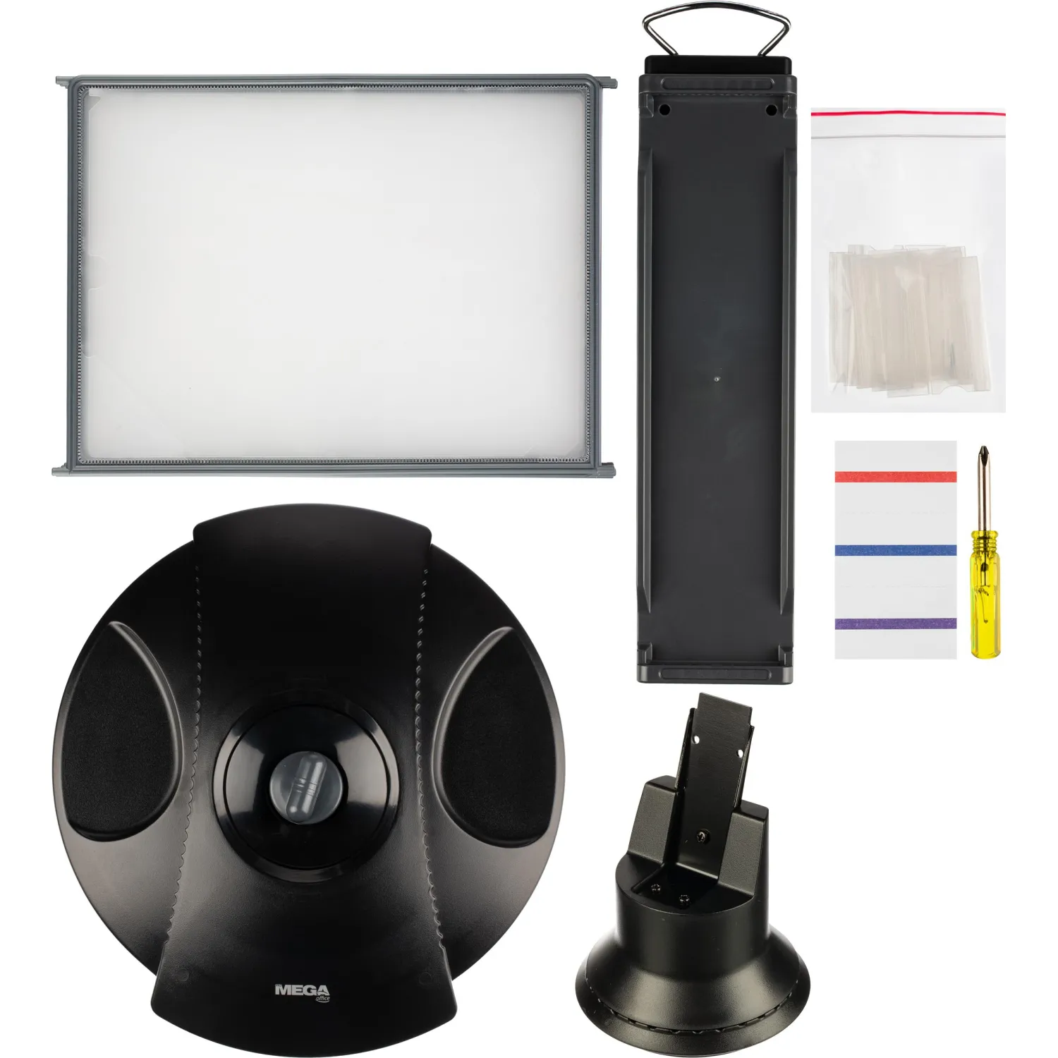 Система оснащена вращающимся механизмом, что делает её удобной для коллективного использования и позволяет легко поворачивать панели. Конструкция установлена на устойчивое основание размером 34.5×32×9 см, предотвращающее опрокидывание при эксплуатации. Общие габариты системы составляют 55×47 см.