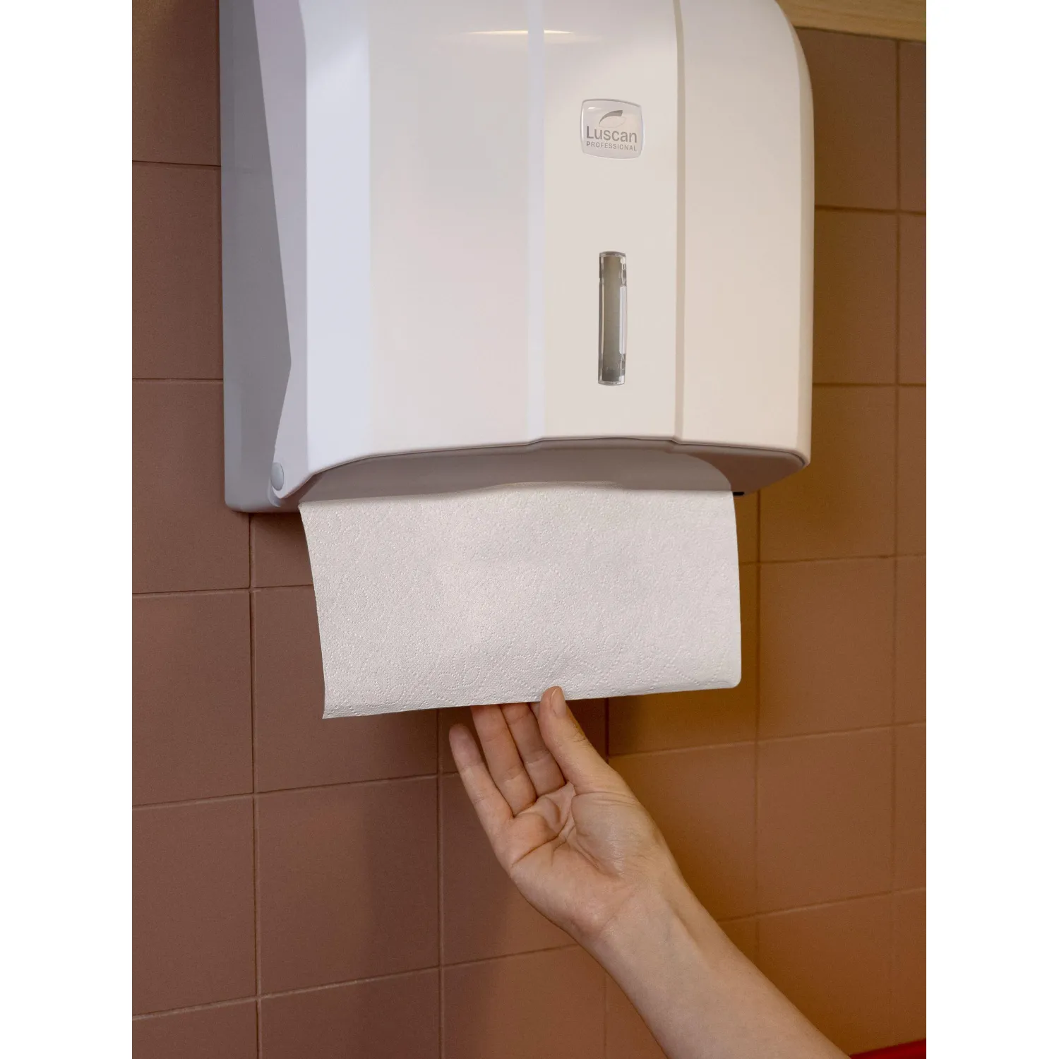 Диспенсер для листовых полотенец Luscan Professional V пластиковый белый (код производителя 479407). Диспенсер Luscan Professional для листовых бумажных полотенец сложения V (ZZ) идеально подходит для использования в местах со средней и высокой проходимостью, таких как туалетная комната в ресторане, офисе, торговом центре, аэропорту, железнодорожном вокзале. Диспенсер для полотенец имеет эргономичную форму и компактные размеры. Диспенсер отвечает всем требованиям гигиены, обеспечивает полистовой бесконтактный забор полотенец, имеет окно визуального контроля. Изготовлен из высококачественного белого ABS-пластика. Крышка закрывается на замок-защелку сверху. Внизу крышка фиксируется на «клипсах» так, что ось вращения крышки находится параллельно полу и стене. Соответственно при открытии крышка (она же передняя панель диспенсера) открывается сверху вниз. Вместимость — 400 листов. Размер диспенсера (ВxШxГ): 27×27×13 см.Материал: пластик. Комплект поставки: диспенсер, ключ и саморезы для крепежа диспенсера. Гарантийный срок: 1 год.