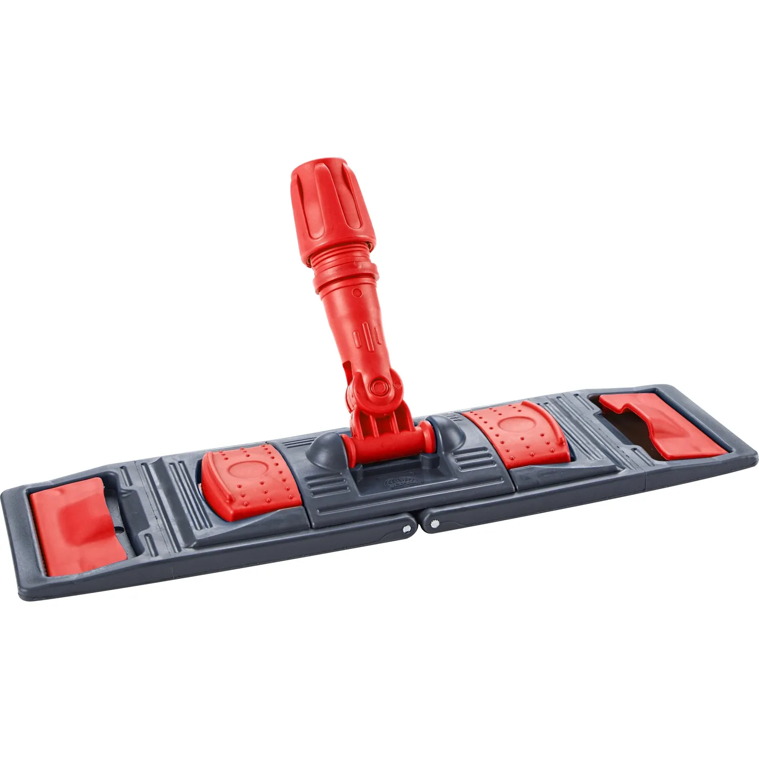 Держатель МОПа универсального типа подходит для плоских насадок с креплением «карман» и «ухо». Он изготовлен из прочного пластика, устойчивого к ударам и нагрузкам, и снабжён двумя педалями для удобного складывания.