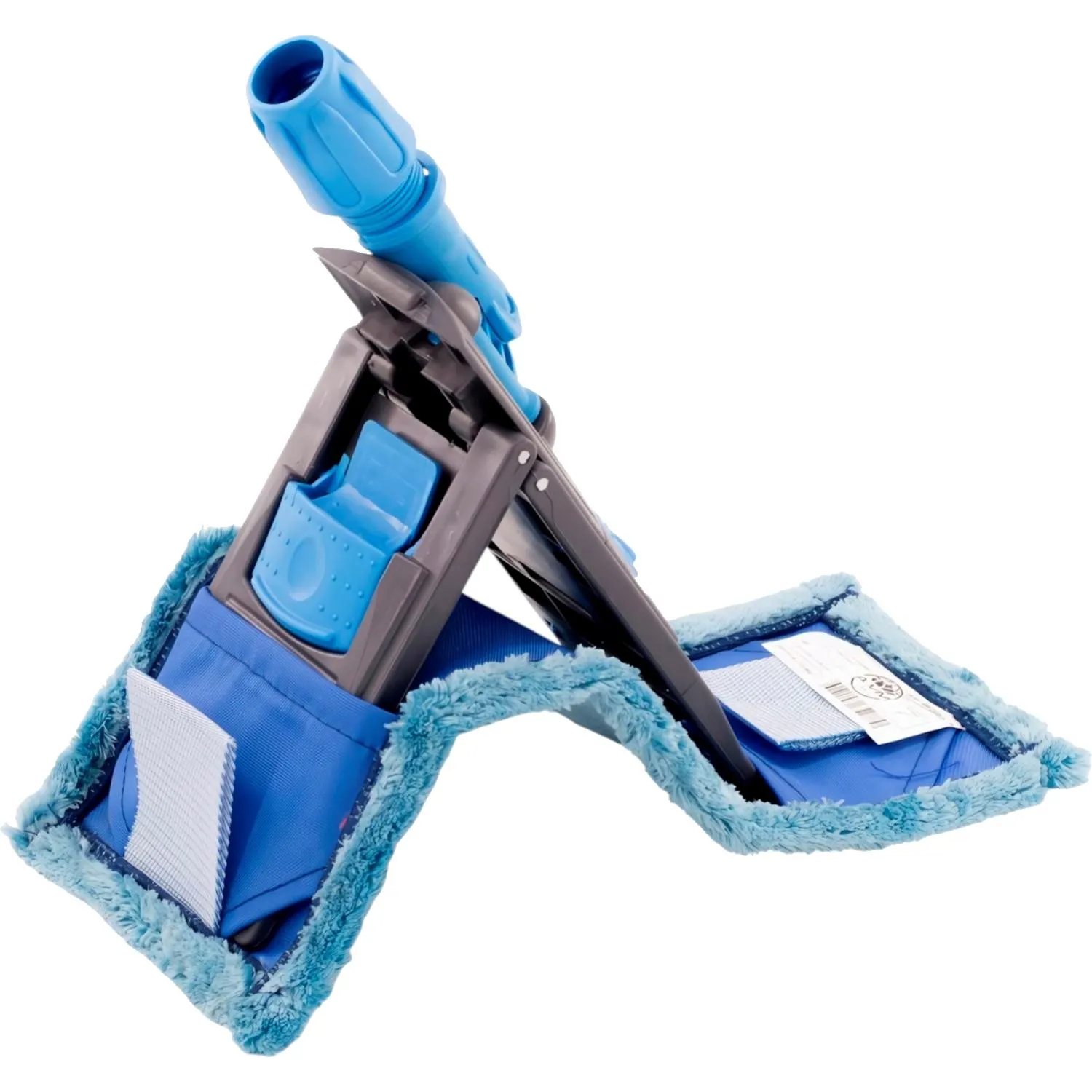 Шарнирное соединение обеспечивает подвижность конструкции, благодаря чему МОП плотно прилегает к поверхности и легко скользит, облегчая уборку. Конструкция складная, что делает её удобной в эксплуатации и транспортировке.