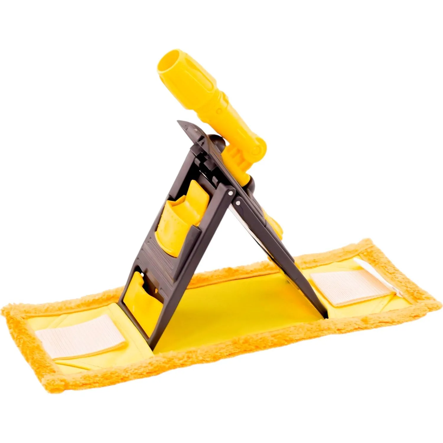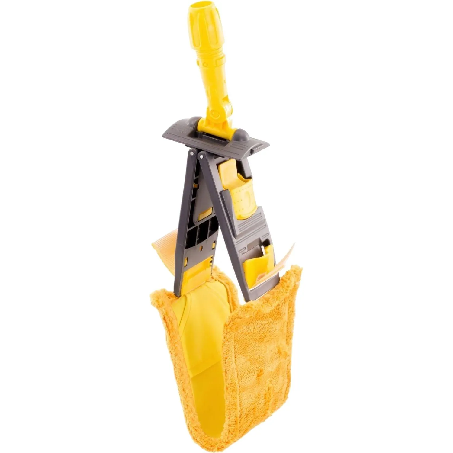 Шарнирное соединение обеспечивает свободу движений и равномерное прилегание МОПа к поверхности, что повышает эффективность уборки, включая обработку труднодоступных мест. Держатель складной, удобен в эксплуатации и рассчитан на регулярное использование.