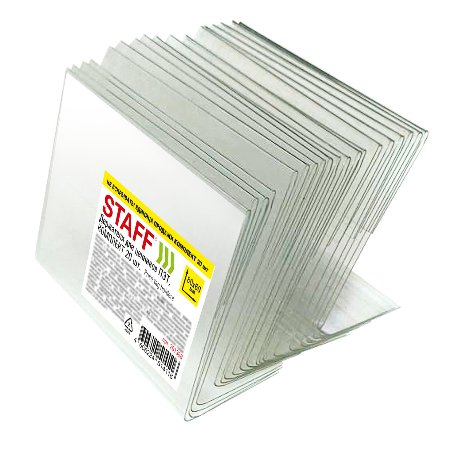 Держатели для ценников 60х40 мм, КОМПЛЕКТ 20 шт., ПЭТ, STAFF, 291387