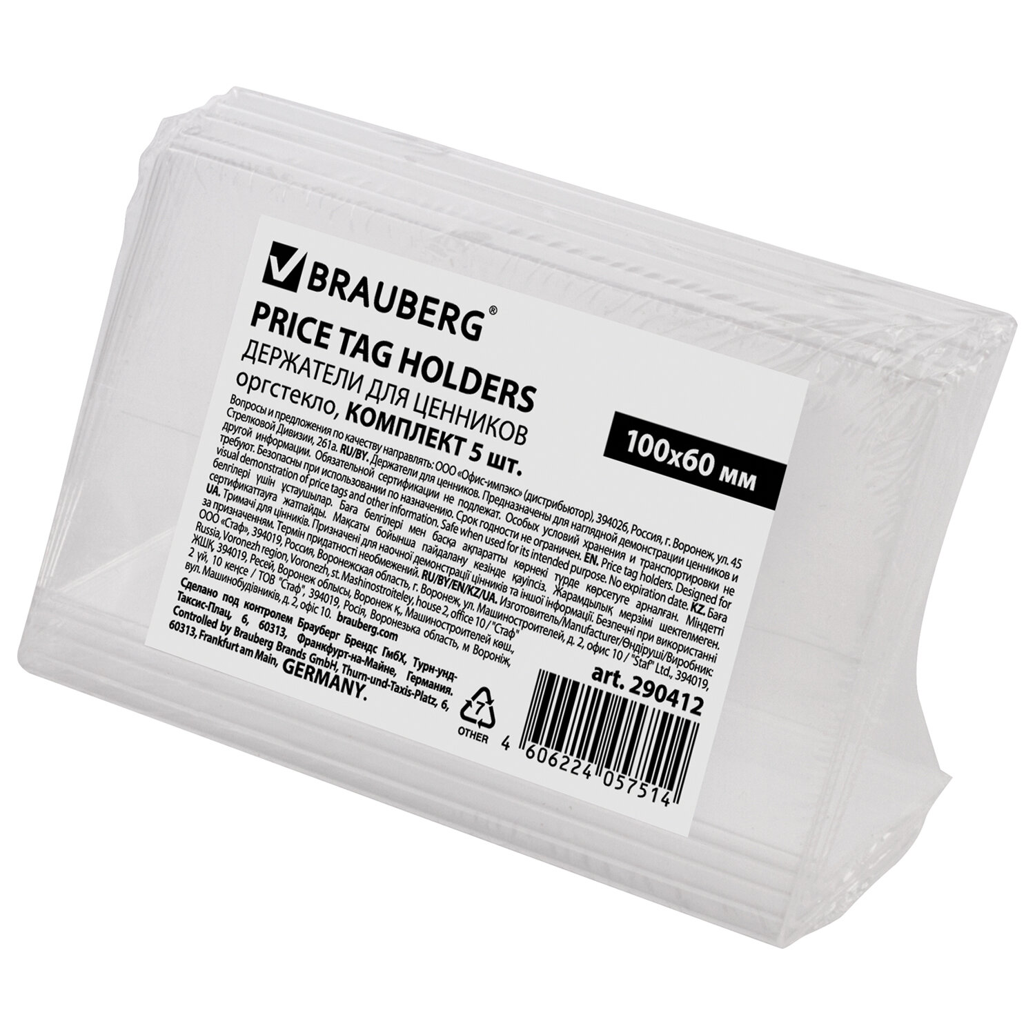 О товаре «Держатели для ценников, 100х60 мм, КОМПЛЕКТ 5 шт., оргстекло, BRAUBERG, 290412»