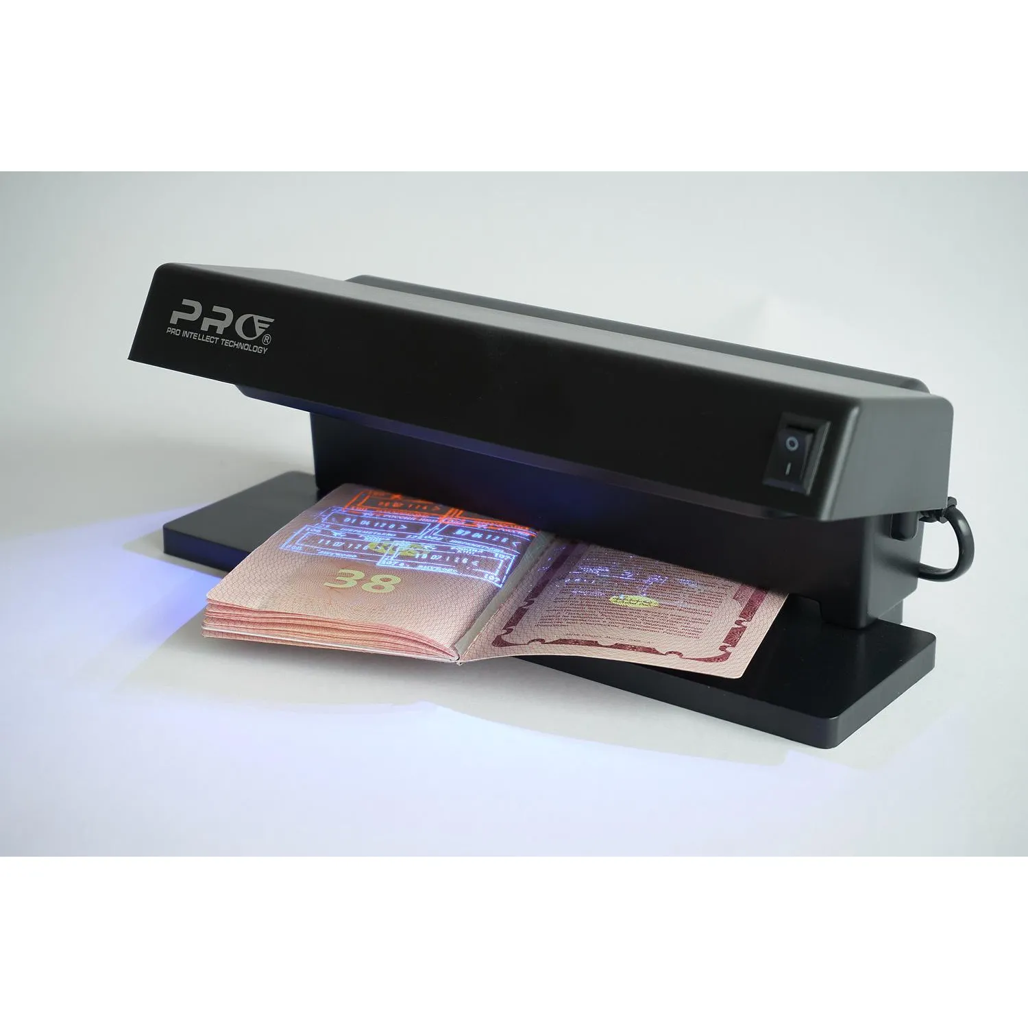 Просмотровый ультрафиолетовый детектор подлинности банкнот. Предназначен для проверки подлиности банкнот любой страны миры, а также защищенных документов: