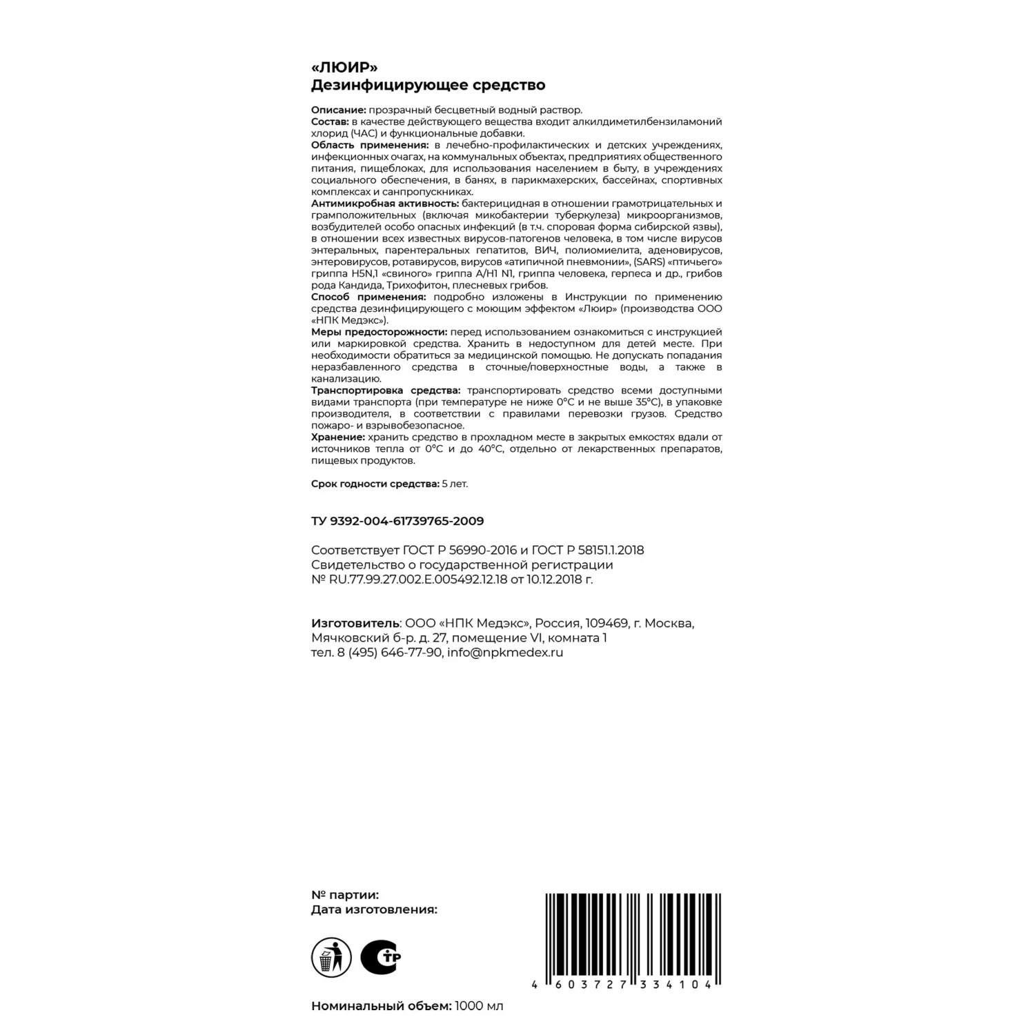 О товаре «Дезинфицирующее средство Люир 1 л (концентрат)»
