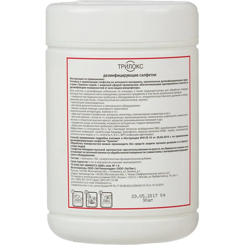 О товаре «Салфетки влажные Трилокс дезинфицирующие (90 салфеток в упаковке)»