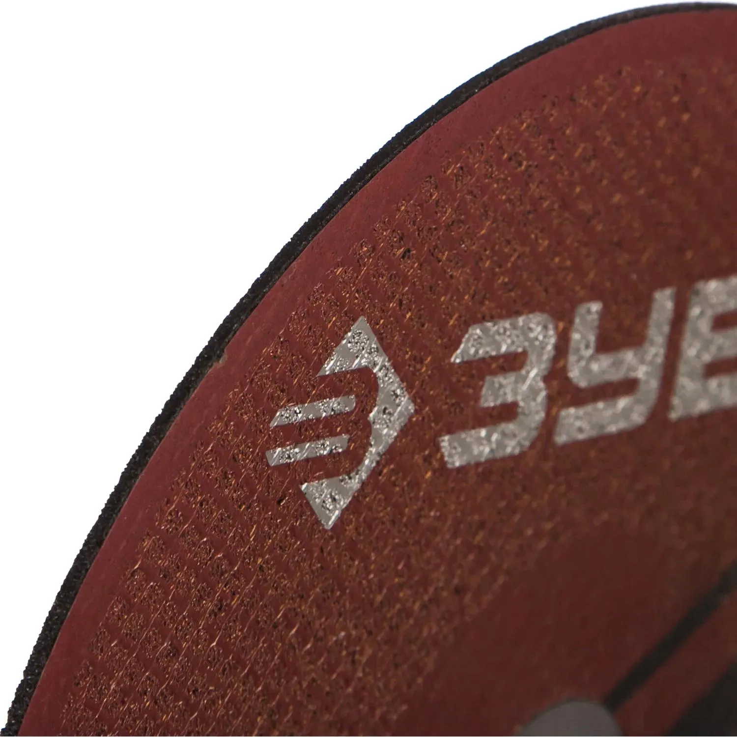 Максимальная линейная скорость диска составляет 80 м/сек, что подтверждает его высокую производительность при резке. Материал абразива — электрокорунд, а зерно имеет размер A40, что способствует долговечности и высокой износостойкости диска. Диск изготовлен с бакелитовой связкой, что придаёт ему прочность и стабильность в процессе эксплуатации. Диск подходит для работы с металлическими поверхностями.