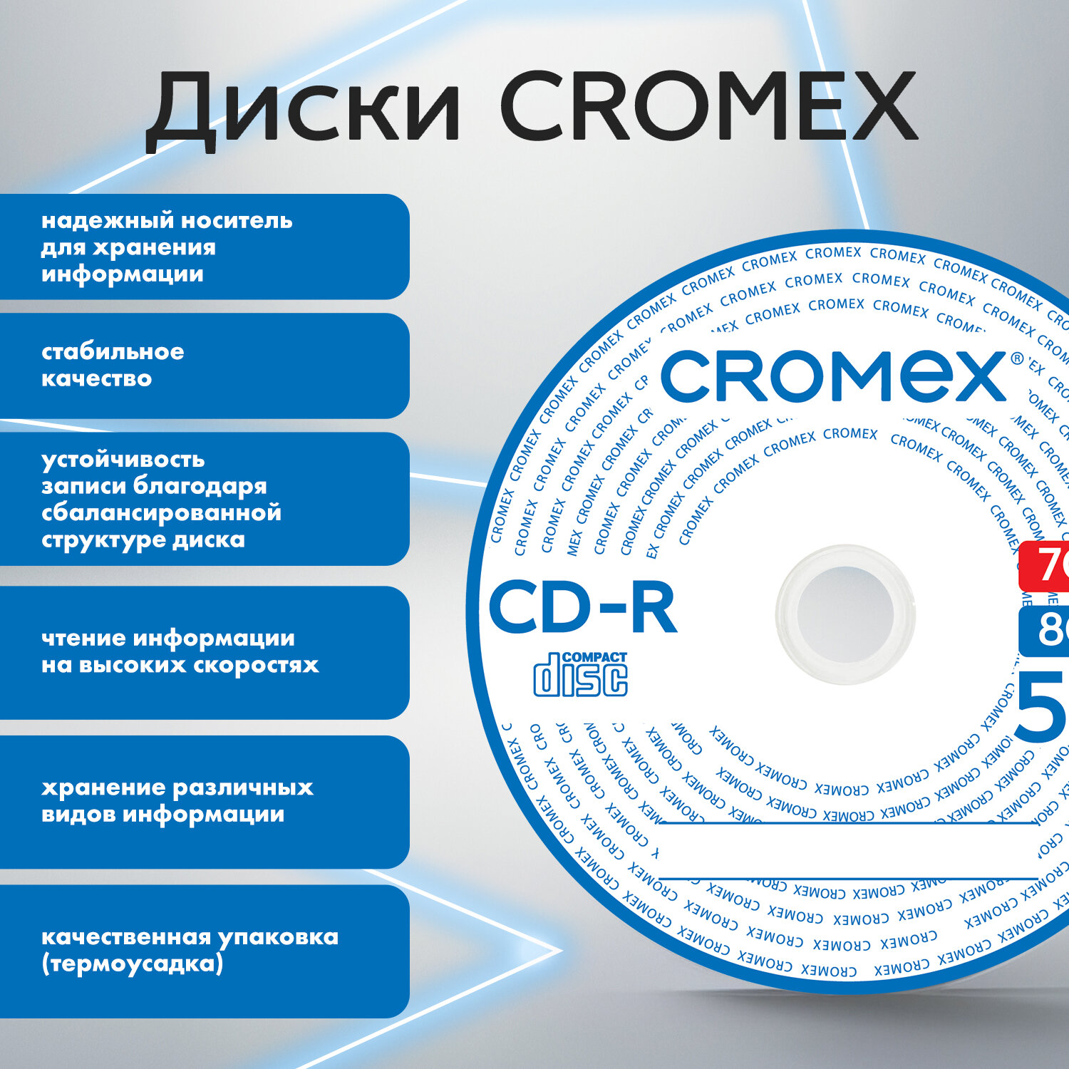 Диск CD-R в конверте КОМПЛЕКТ 50 шт., 700 Mb, 52x, CROMEX (КРОМЕКС), 513797