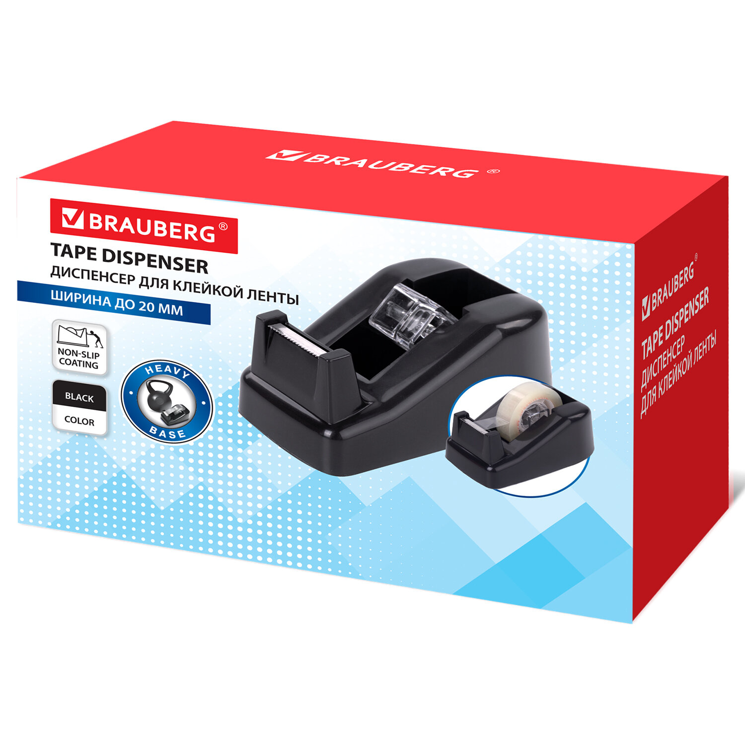 Диспенсер для клейкой ленты BRAUBERG настольный, утяжеленный, средний, черный, 11,8х5х5 см, 440142