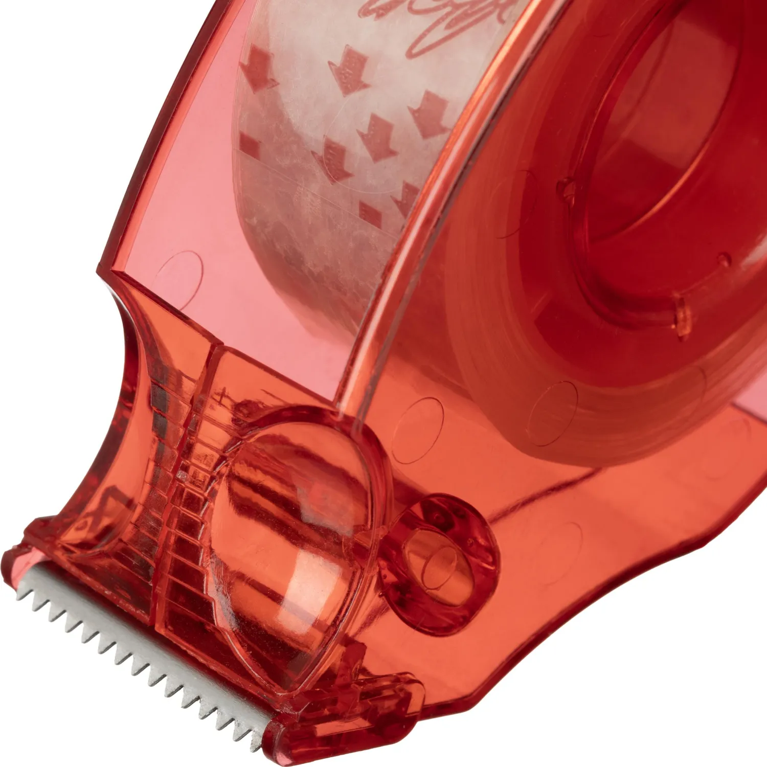 Лента липкая разработана для канцелярских нужд. Применяется для склеивания поврежденных документов, скрепления страниц, расклейки объявлений, защиты надписей, изготовления этикеток, для упаковки подарков, коробок, пакетов и прочего. Диспенсер для клейкой упаковочной ленты шириной 18 мм. Материал корпуса — пластик. Цвет — красный. Максимальная длина намотки клейкой ленты для работы с диспенсером — около 20 метров.