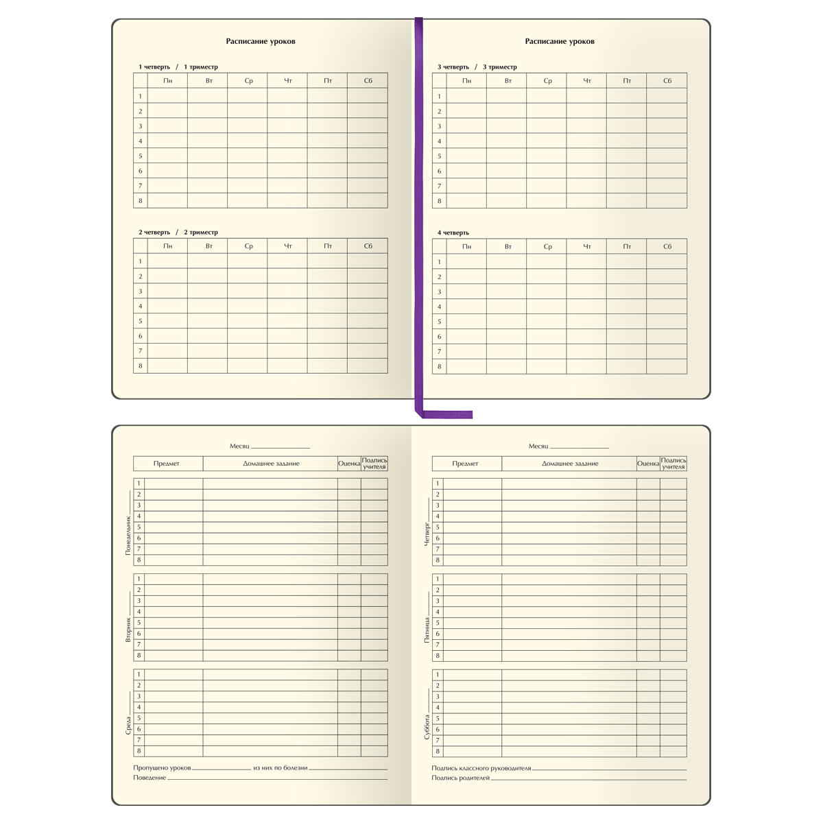 Школьный дневник BG "Double. Do it for yourself" в твёрдом переплёте — главный помощник школьника в планировании учебного времени и отслеживания успеваемости. Изделие подходит для учеников 1-11 классов. Внутренний блок состоит из 48 листов тонированной бумаги плотностью 70 г/м2. Блок напечатан с использованием 1 краски. Тип скрепления — сшивка. Дневник рассчитан на восемь уроков в день. Содержит 14 страниц для личных данных.