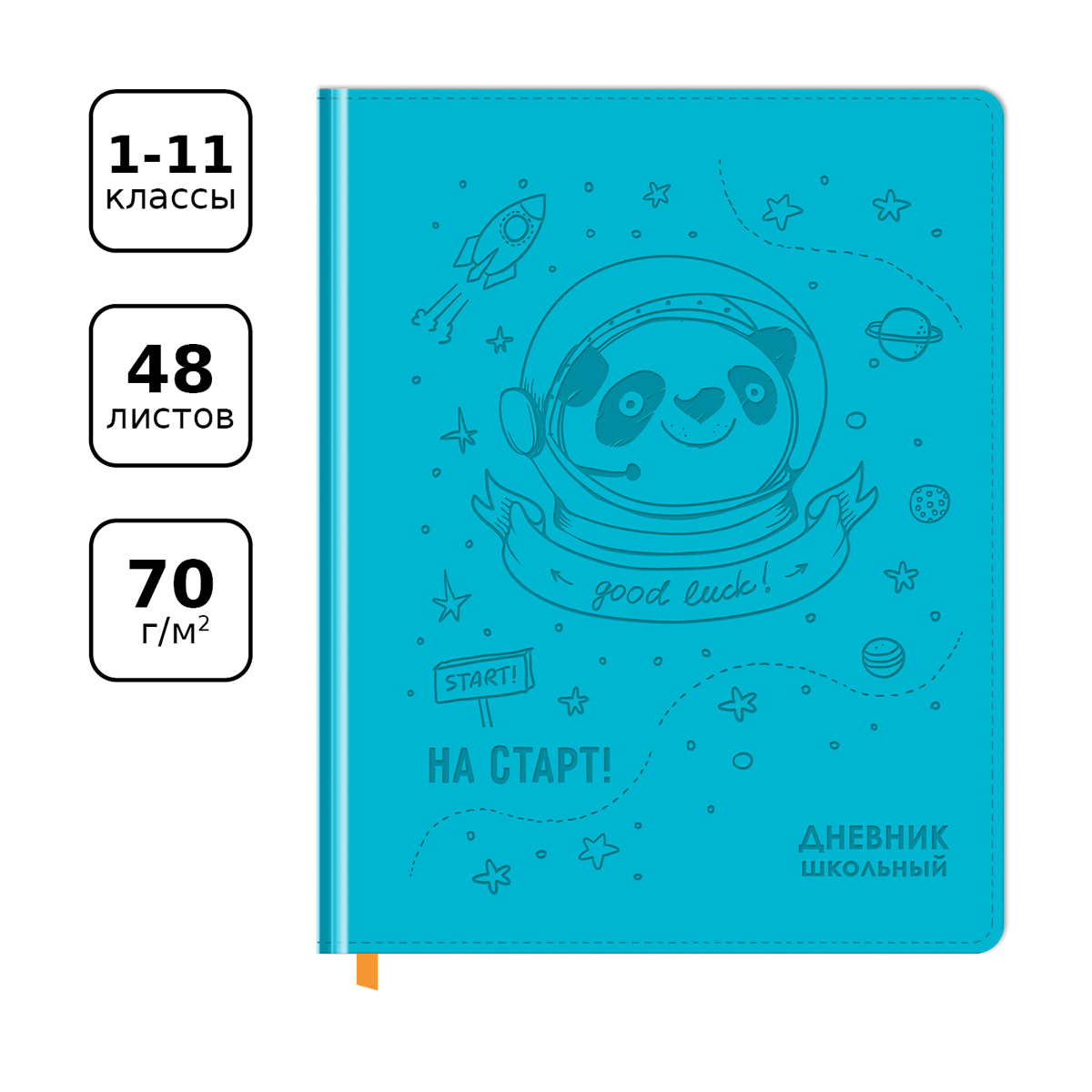 Дневник 1-11 кл. 48л. (твердый) BG "Good luck", иск. кожа, термотиснение, ляссе