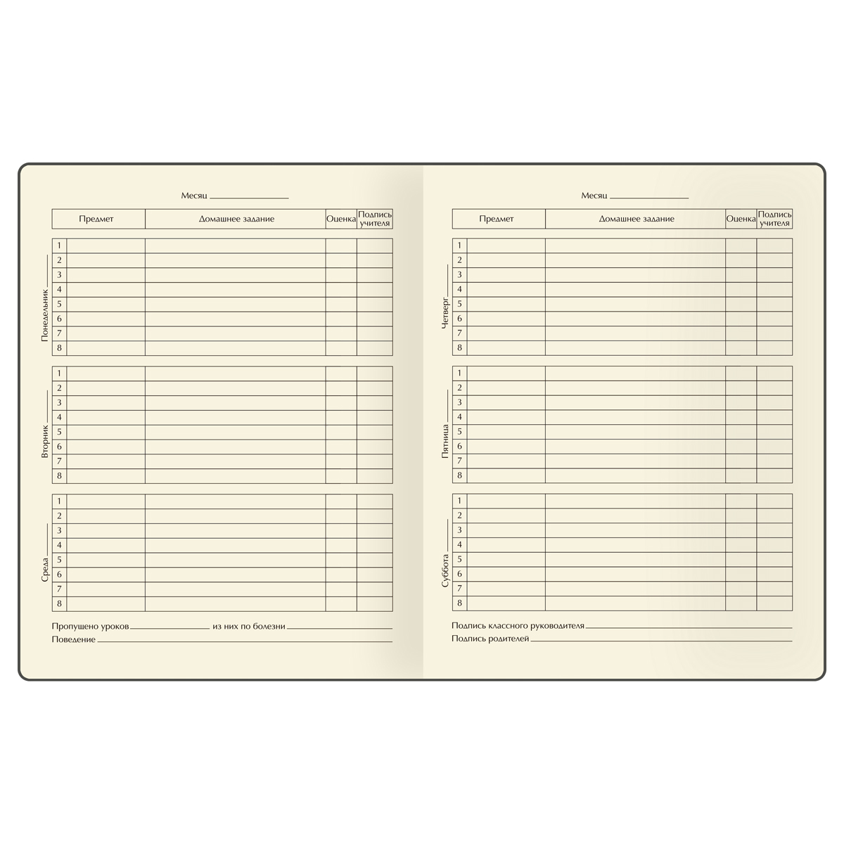 Твёрдый переплёт гарантирует, что дневник прослужит в течение всего учебного года, сохранив внешний вид. Внутренний блок состоит из 48 листов тонированной офсетной бумаги плотностью 70 г/м2. Печать блока в 1 краску. Учебный день рассчитан на 8 уроков. В дневнике школьник обнаружит справочные материалы, которые помогут быстро найти ответы на вопросы и закрепить знания.