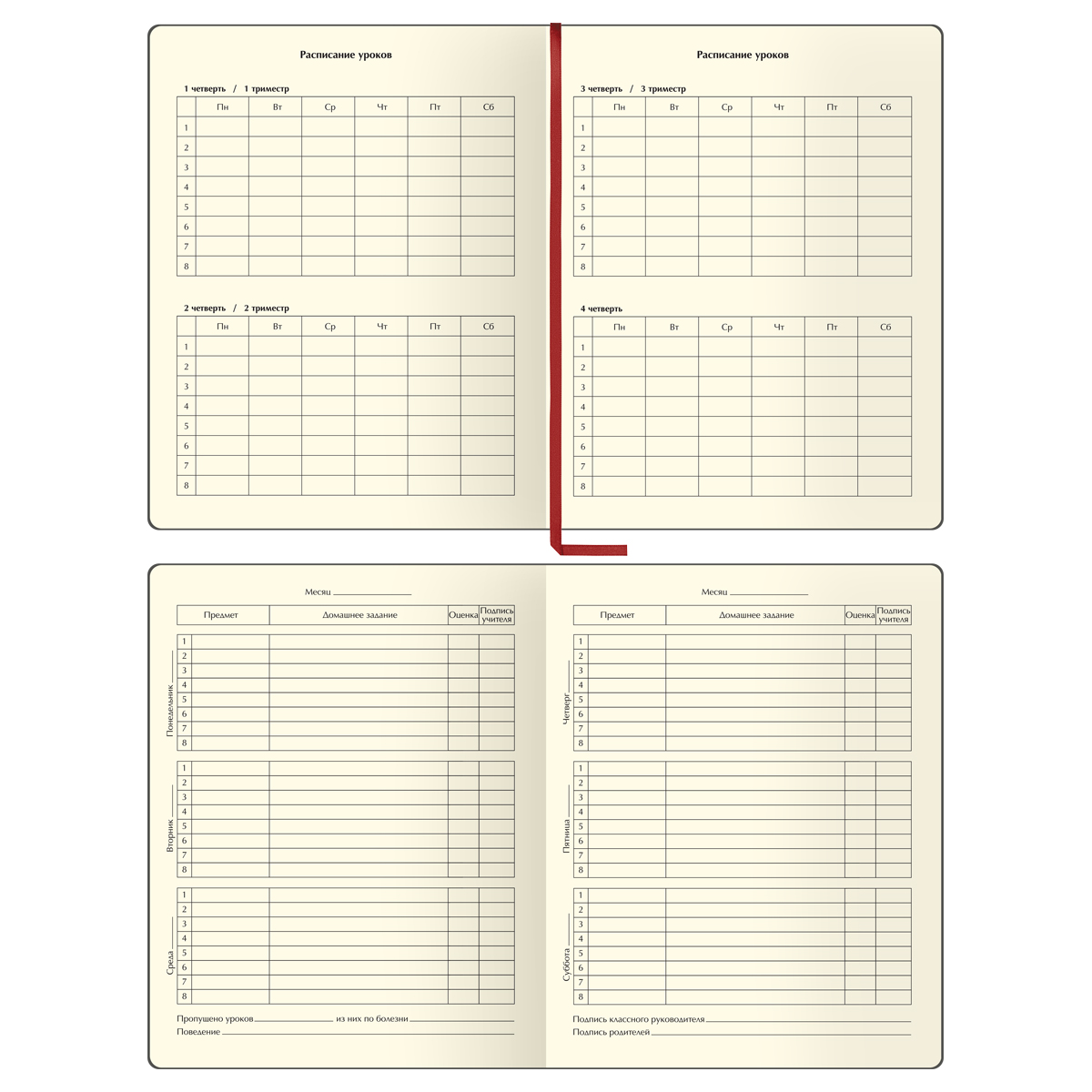 Дневник школьный BG "Россия. Красный" в твёрдом переплёте – главный помощник школьника в планировании учебного времени и отслеживания успеваемости, подходит для учеников 1-11 классов. Изделие состоит из 48 листов тонированной бумаги плотностью 70 г/м2. Печать блока в 1 краску. Тип скрепления – сшивка. Дневник рассчитан на 8 уроков в день. Дневник содержит 14 страниц для личных данных.