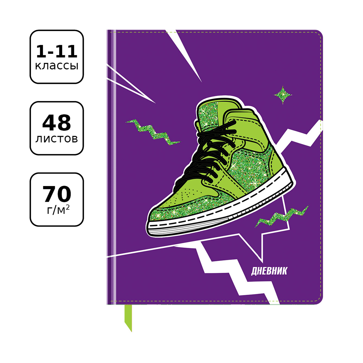 О товаре «Дневник 1-11 кл. 48л. (твердый) BG "В движении", иск. кожа, шелкография, высокий глиттер, ляссе»