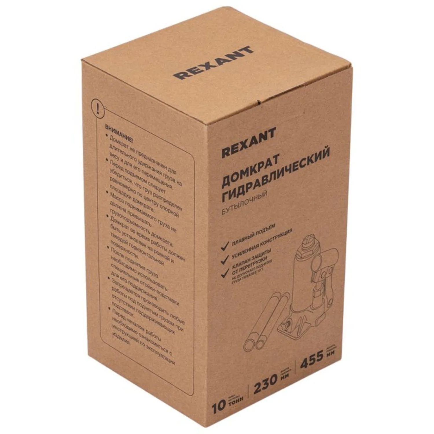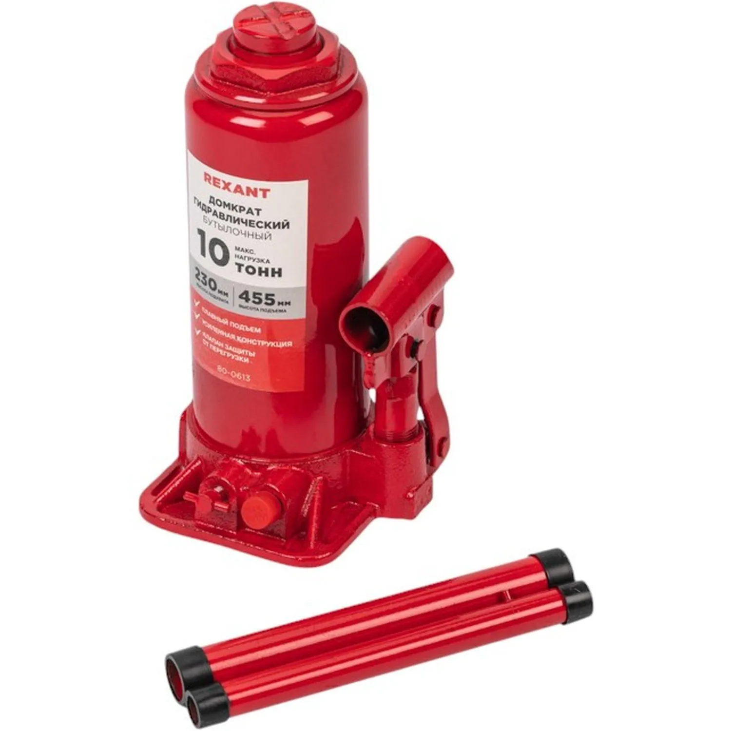 Домкрат гидравлический бутылочный Rexant 10 тонн 230-455 мм (80-0613)