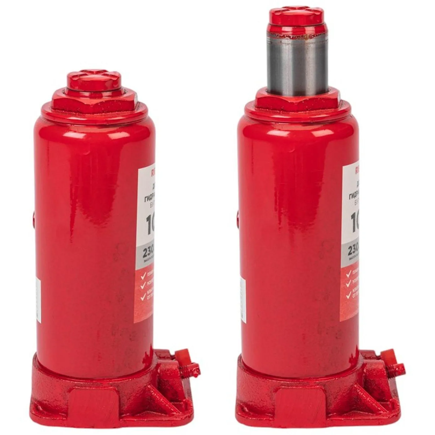 Гидравлический бутылочный домкрат Rexant предназначен для поднятия грузов массой до 10 тонн на высоту до 455 мм. Оптимален для автомобилей с большим клиренсом. Оснащен гидравлической системой, обеспечивающей высокую мощность и надежность. Домкрат станет незаменимым помощником как для автолюбителей, так и для профессионалов на СТО. Отличается плавностью хода, надежностью и жесткостью конструкции. Клапан безопасности предотвращает подъем груза тяжелее 10 т, предохраняя домкрат от поломки.