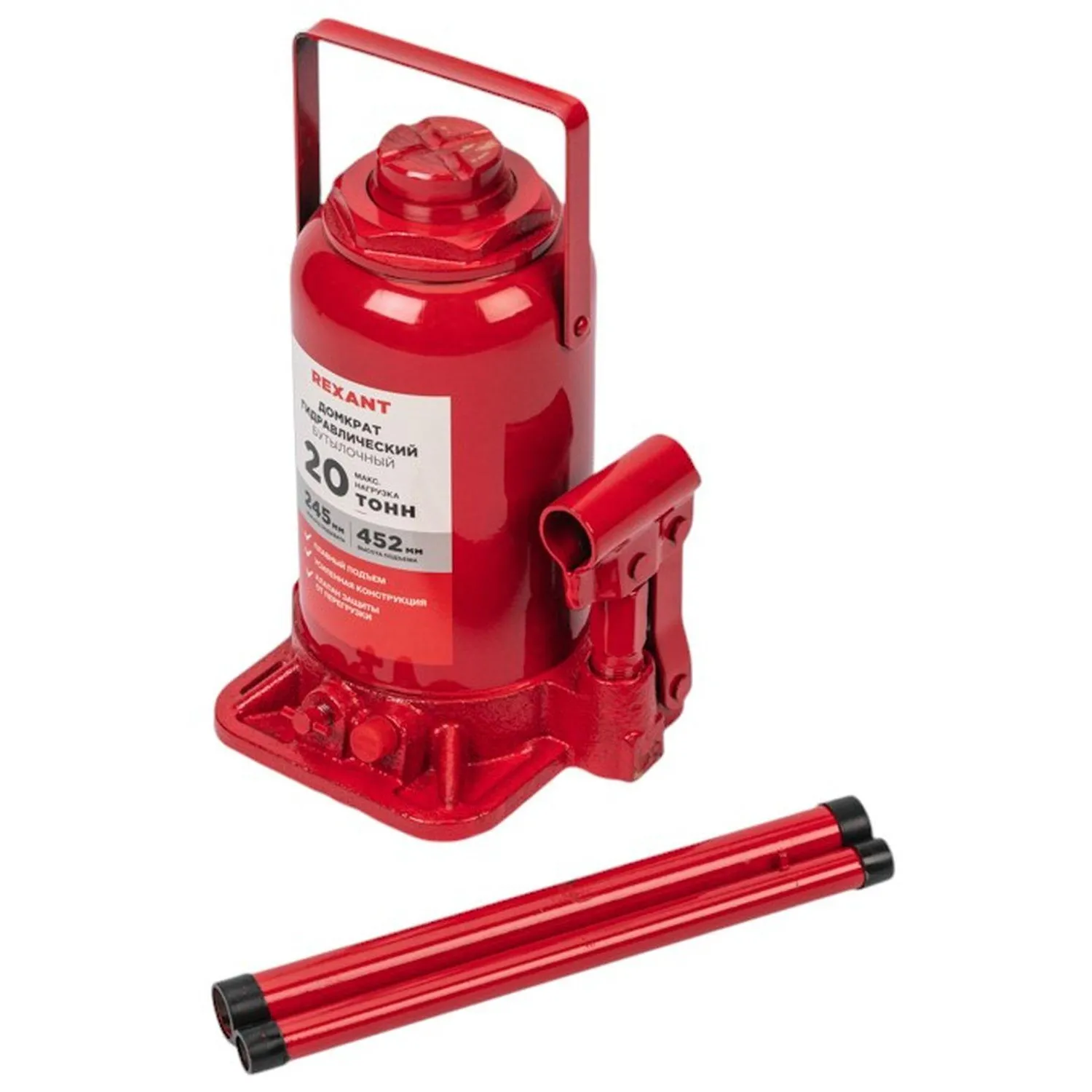 Домкрат гидравлический бутылочный Rexant 20 тонн 245-452 мм (80-0616)