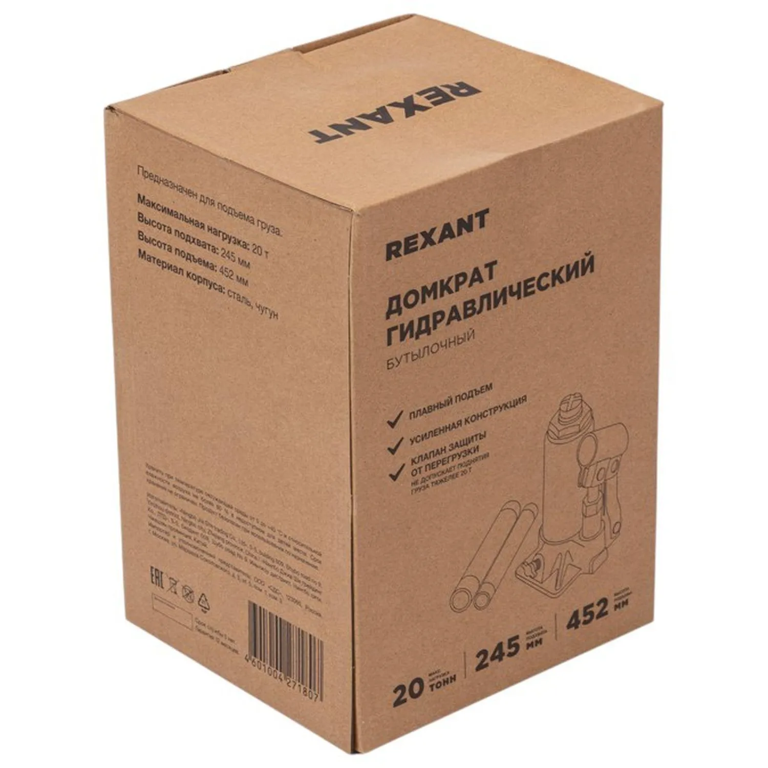 О товаре «Домкрат гидравлический бутылочный 20т REXANT»