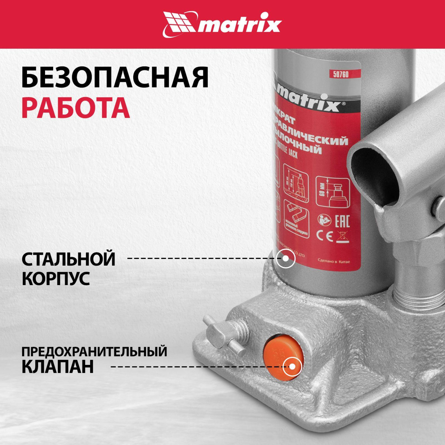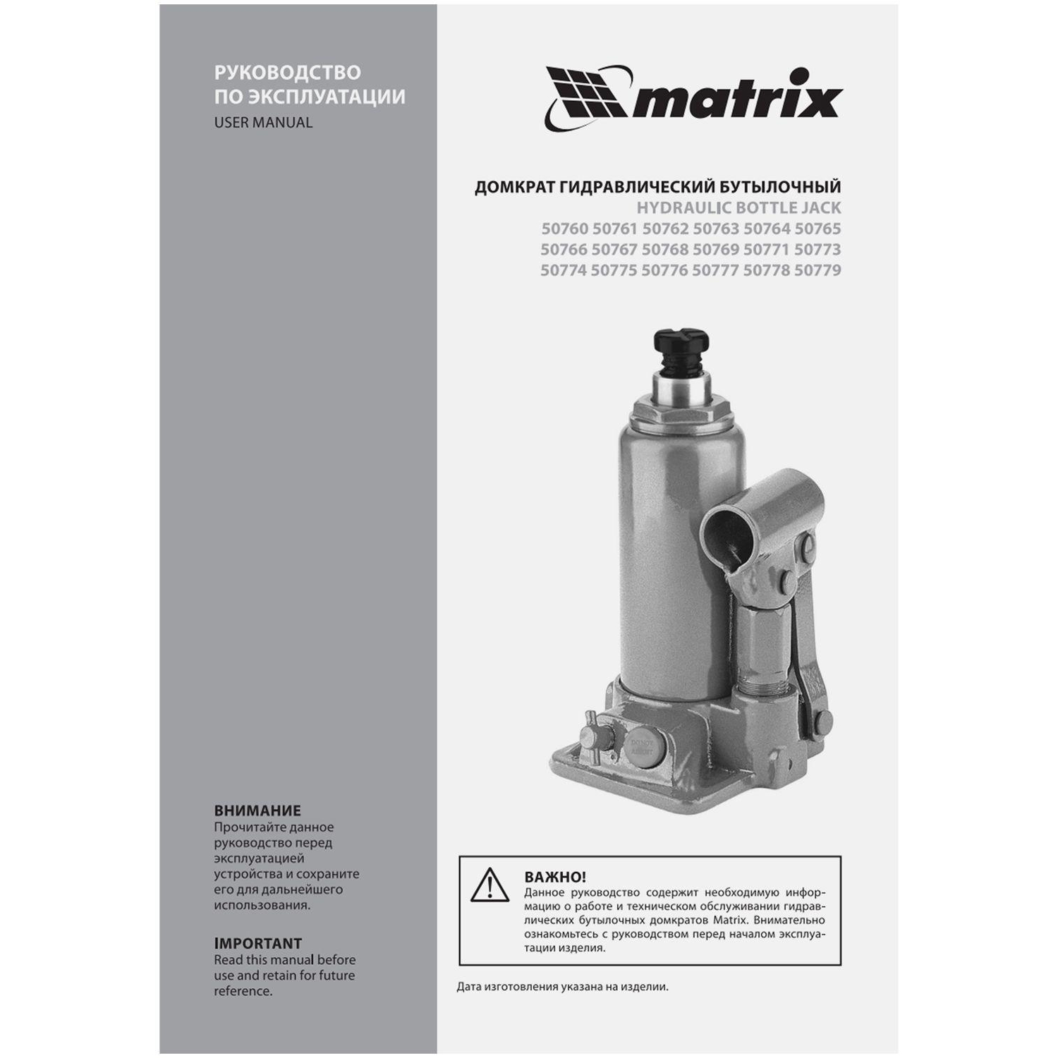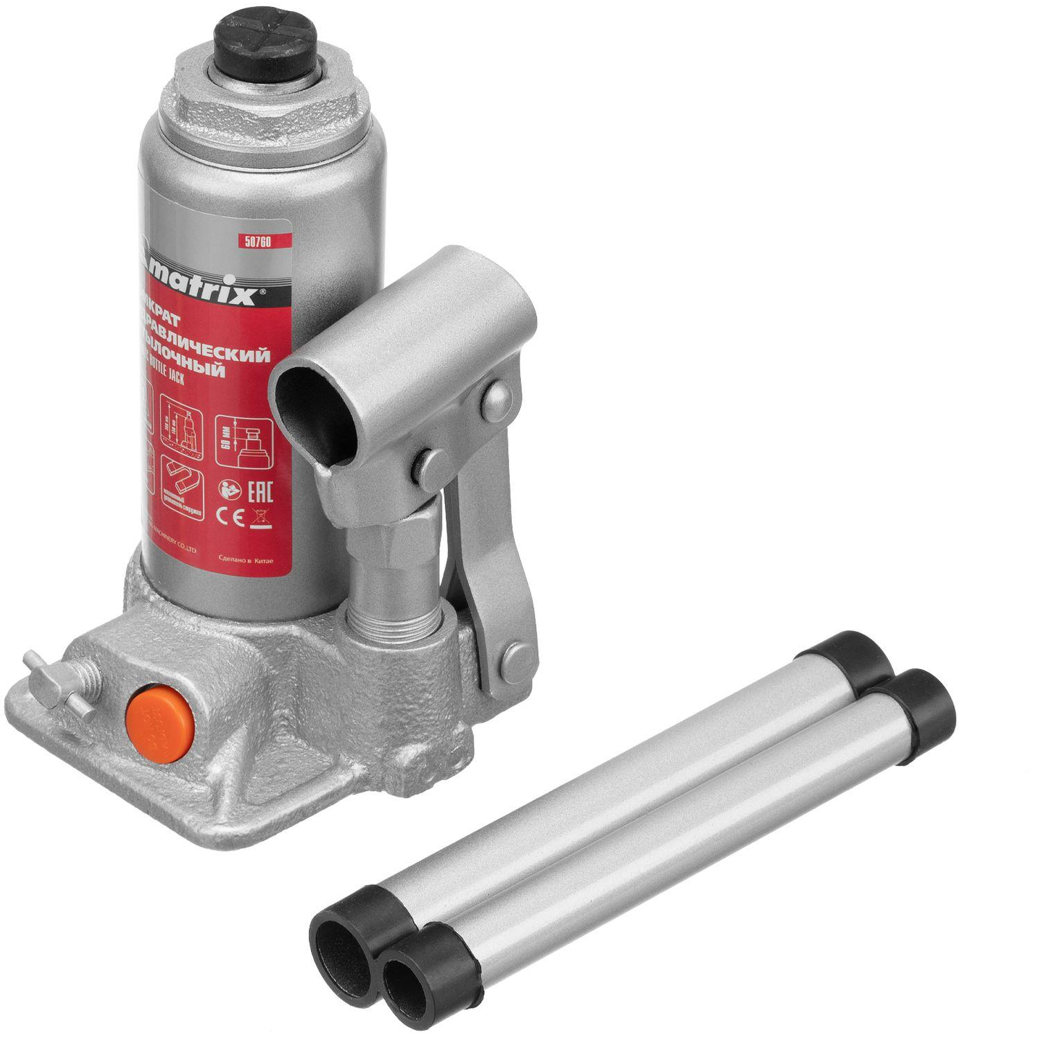 О товаре «Домкрат гидравлический бутылочный, 2т, 158-308 мм Matrix 50760»