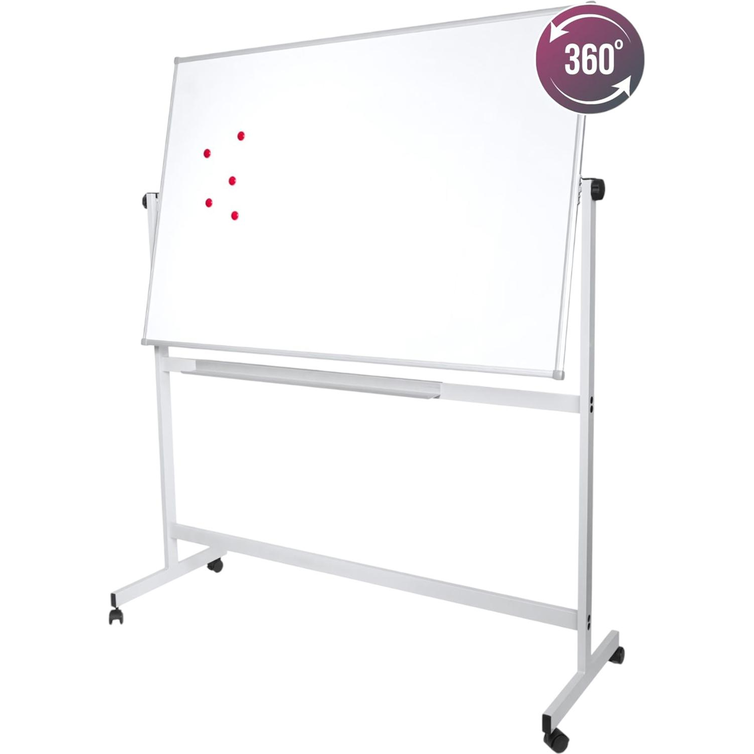 Магнитно-маркерная доска представляет собой двустороннее мобильное решение для офисов, учебных заведений и других помещений, где важно легко менять ориентацию доски. Она вращается на 360 градусов, что позволяет использовать обе стороны для записи, при этом конструкция оснащена механизмом фиксации, который позволяет установить доску под нужным углом. Мобильная подставка с 4 поворотными колёсами обеспечивает лёгкость перемещения доски по помещению и её блокировку в нужном положении.