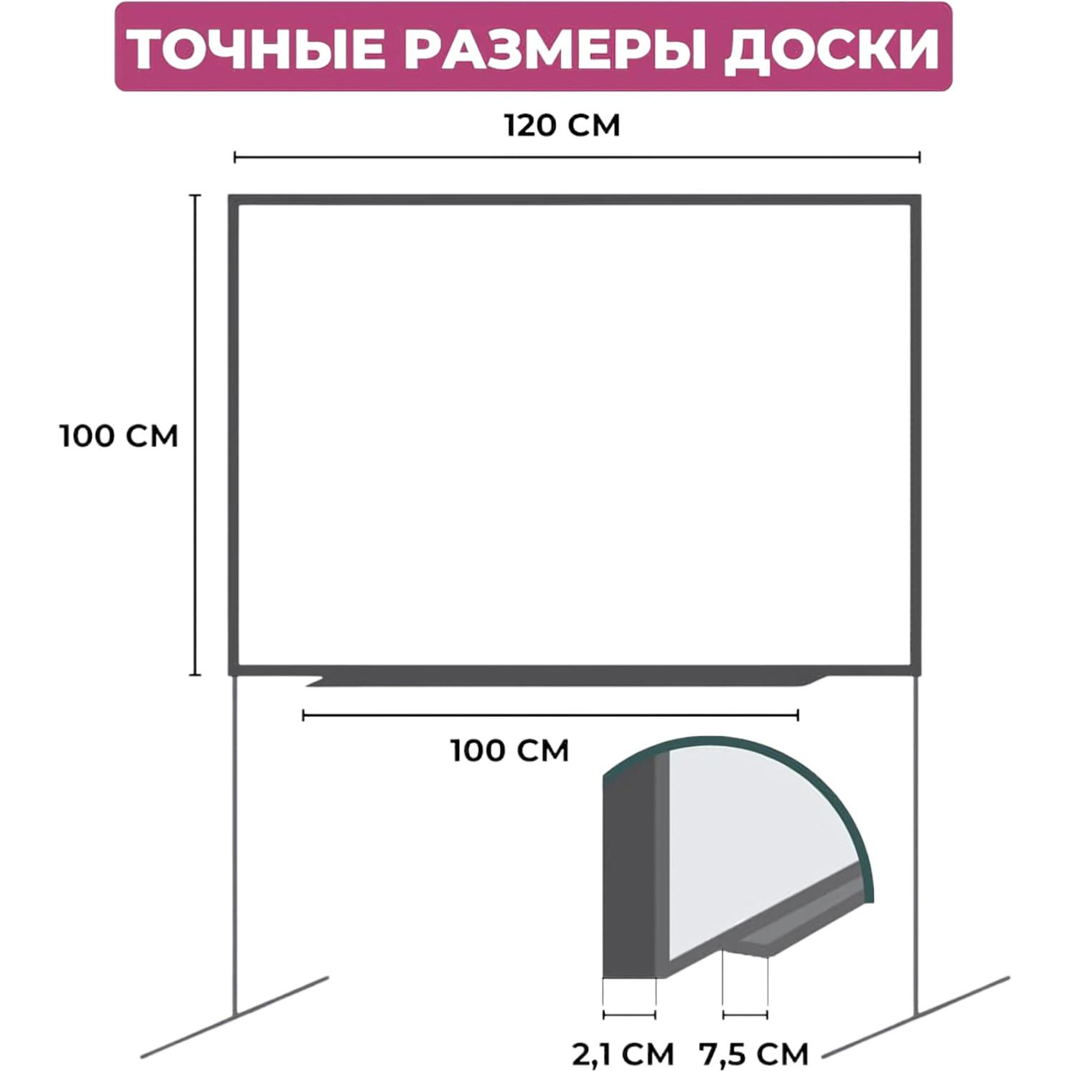 Рабочая поверхность доски белая и позволяет использовать маркеры для магнитно-маркерных досок, а также прикреплять информацию с помощью магнитов. Для удаления записей рекомендуется использовать специальные губки-стиратели и чистящий спрей. Доска комплектуется лотком для маркеров и монтажным крепежом. Увеличенная прочность и надёжность конструкции достигается за счёт премиум профиля овального сечения шириной 21 мм.