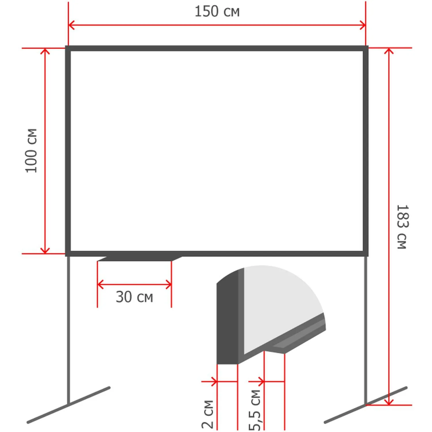 Размер рабочей поверхности доски составляет 96.7×148 см, общая высота доски — 189 см. Доска не предназначена для крепления на стену и не подходит для вертикальной установки. В комплект поставки входят лоток для маркеров и монтажный крепёж. Каждая доска упакована в индивидуальную картонную упаковку.