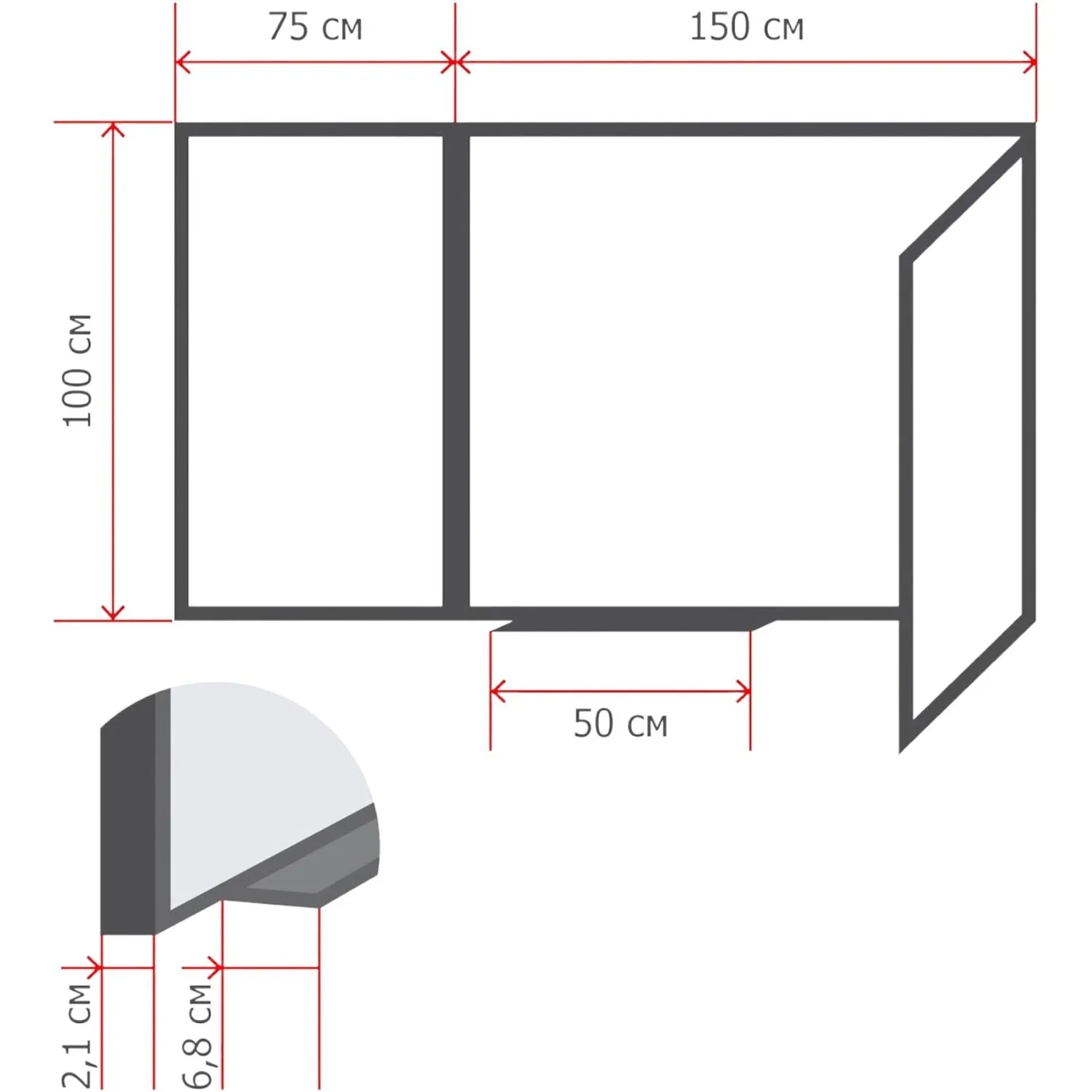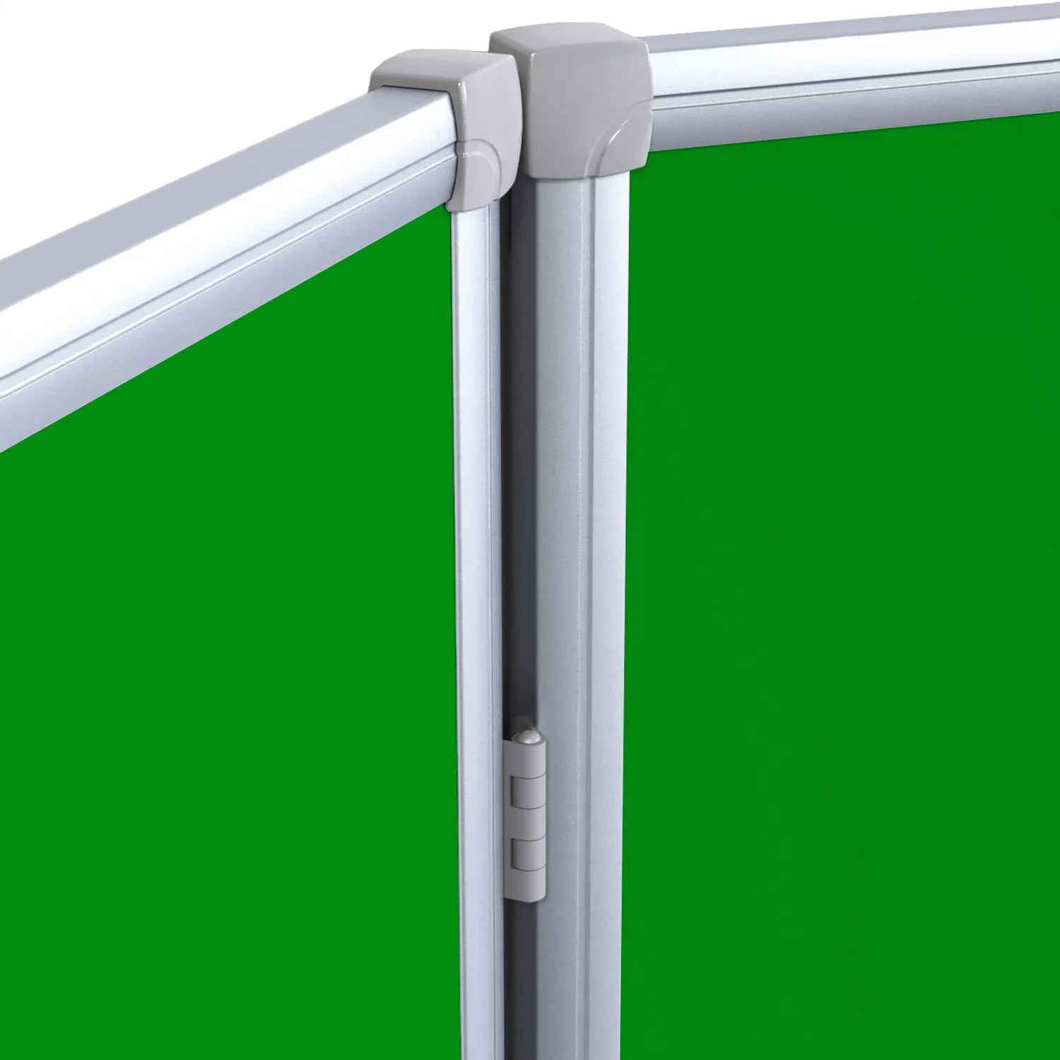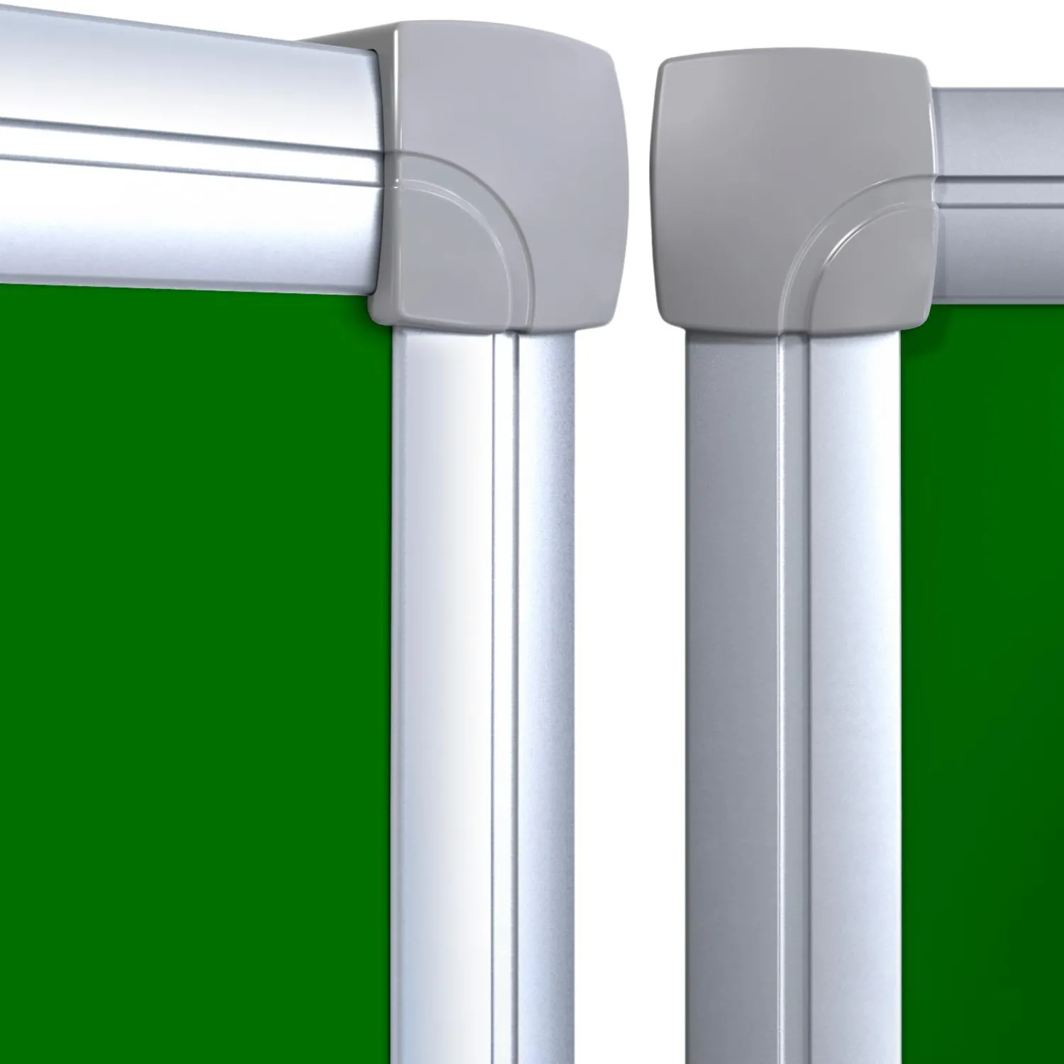 Обратная сторона створок доски — зеленая. Размер доски в закрытом состоянии 150×100 см, размер боковых секций 100×75 см, размер доски в открытом состоянии — 300×100 см. Рама из алюминиевого анодированного профиля, скрепленного пластиковыми уголками.
