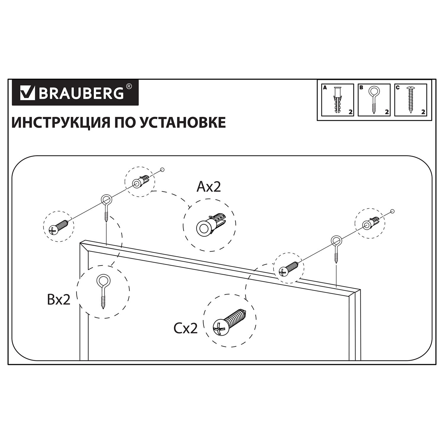 Размер доски – 60х90 см. Есть возможность горизонтального и вертикального крепления. Набор креплений для доски в комплекте.