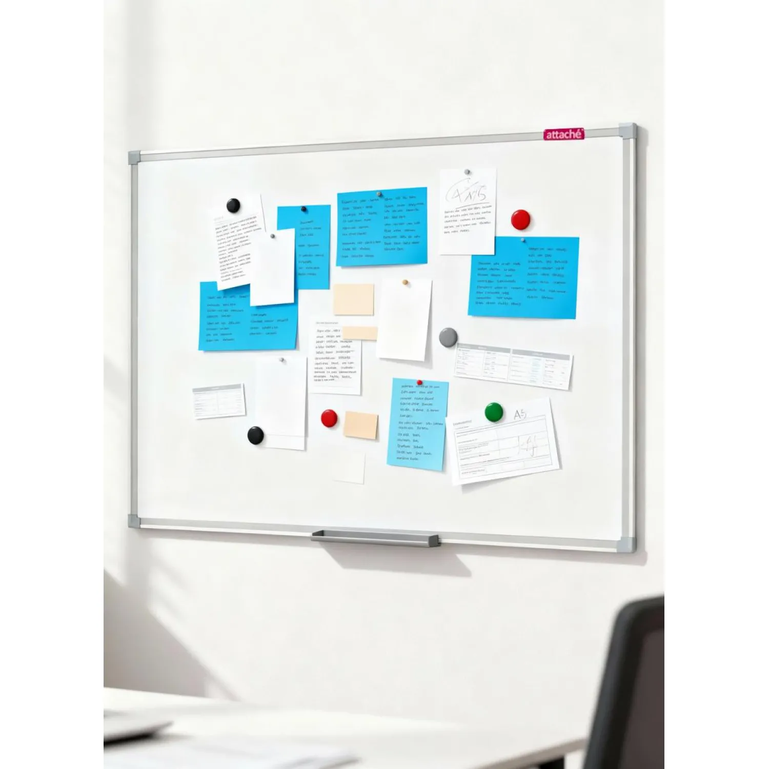 Доска магнитно-маркерная Attache (Attache Economy) Ultra предназначена для использования в офисах, учебных заведениях и домашних офисах. Белая металлическая поверхность с лаковым покрытием позволяет использовать её для письма маркерами для белых досок и крепления информации с помощью магнитов. Размер рабочей поверхности составляет 57×87 см.