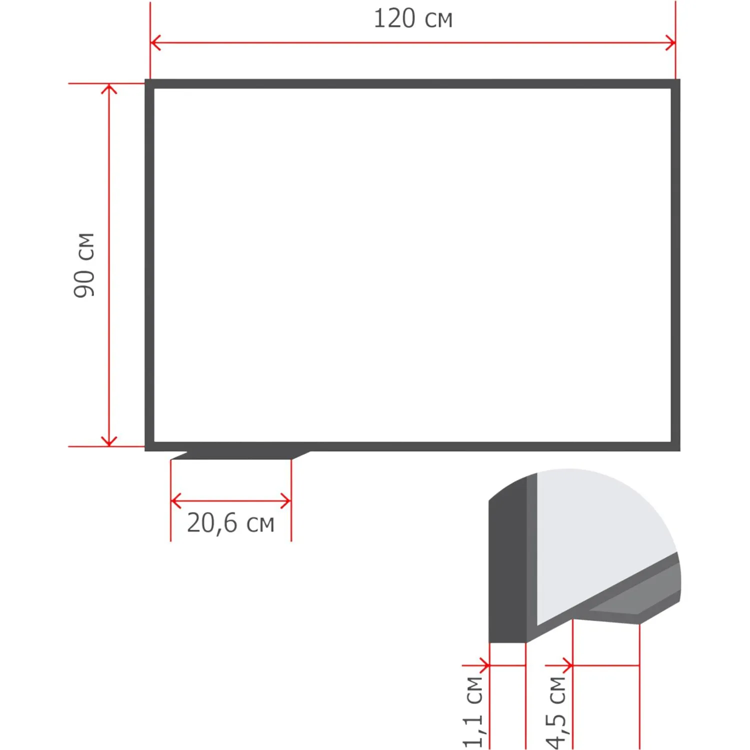 Доска настенная одноэлементная магнитно-меловая, лаковое покрытие. Размер доски 90×120 см. Рама из алюминиевого анодированного профиля, пластиковые уголки. Предназначена для нанесения информации с помощью мела. Поверхность доски также позволяет прикреплять листы бумаги, карты и т. п. с помощью магнитов. Скрытое крепление к стене на четырех пластиковых кронштейнах. Крепеж для крепления к стене в комплекте. Мела в комплекте нет. Увеличенное рабочее пространство за счет использования утонченной алюминиевой рамы шириной 11 мм.