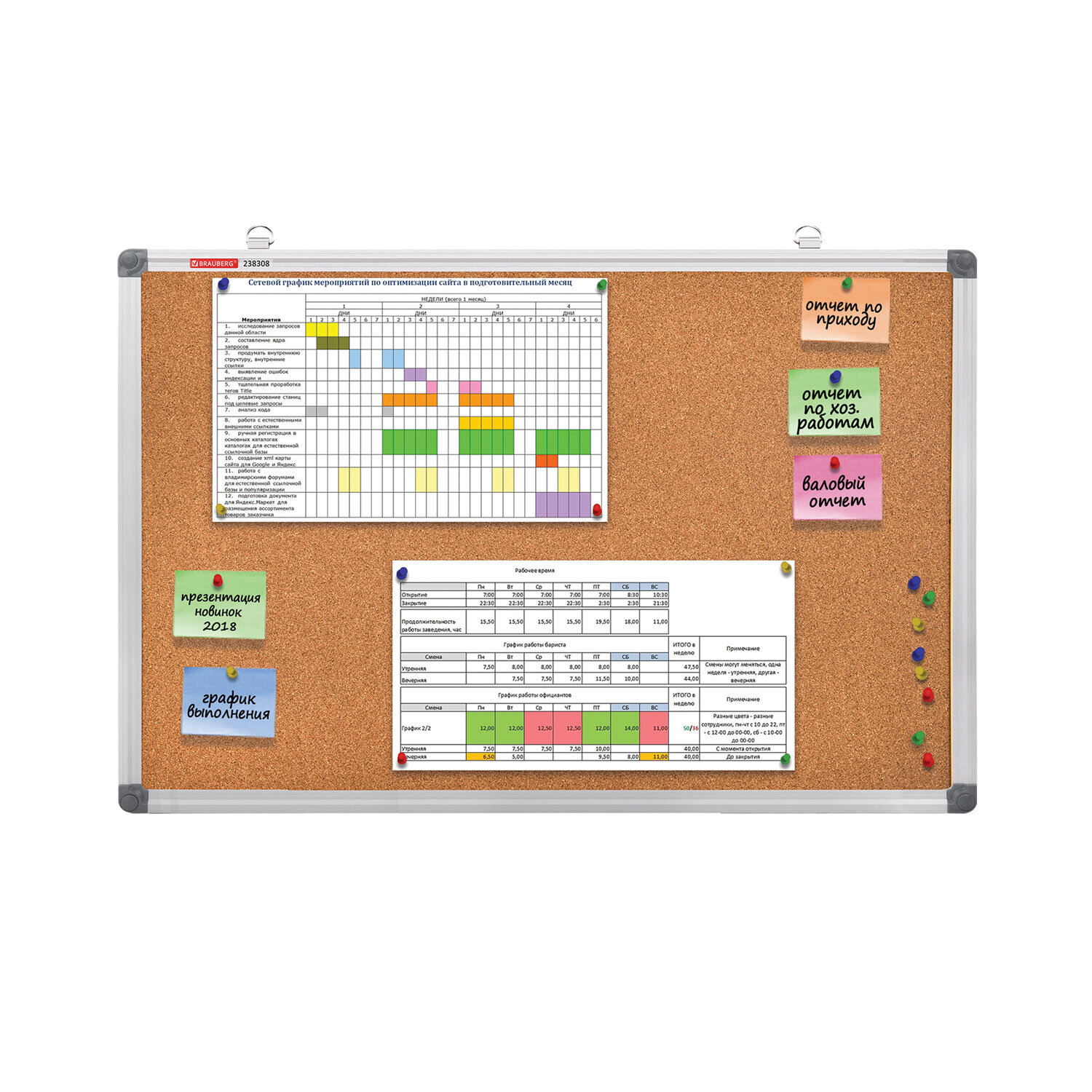 О товаре «Доска пробковая для объявлений 60х90 см, алюминиевая рамка, BRAUBERG Extra, 238308»
