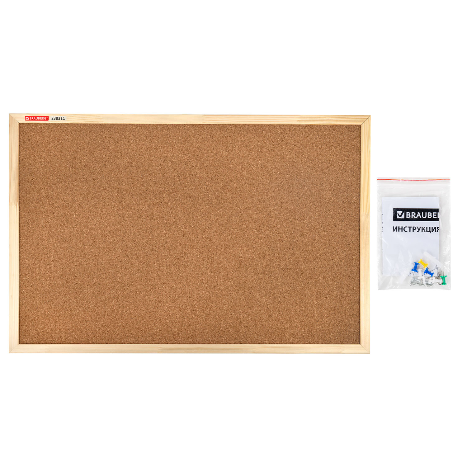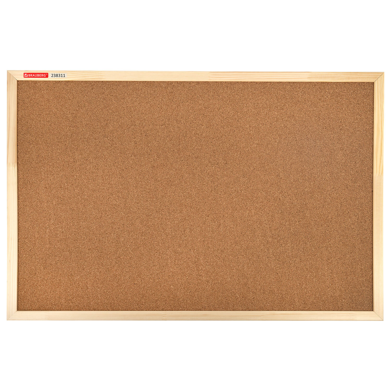 Доска пробковая для объявлений 60х90 см, деревянная рамка, BRAUBERG Wood, 238311
