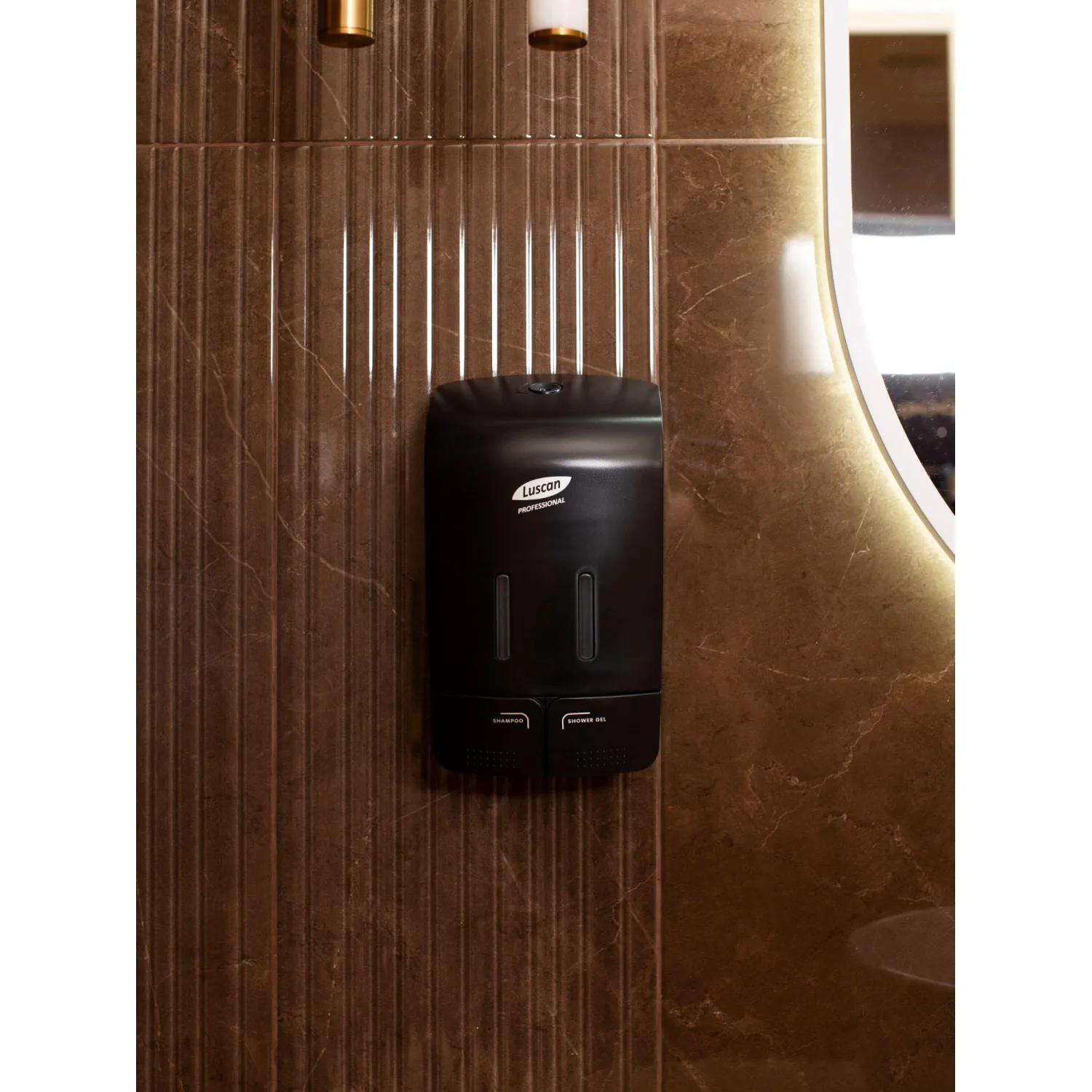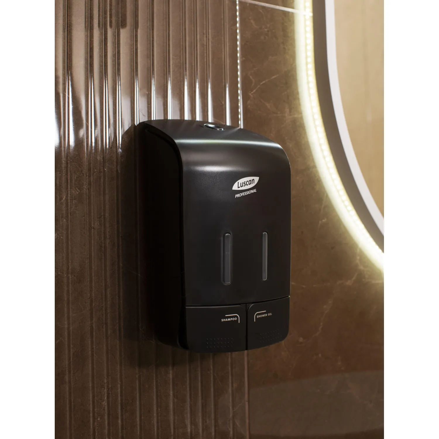 О товаре «Дозатор (диспенсер) для жидкого мыла механический Luscan Professional Etalon пластик черный 2x550 мл»