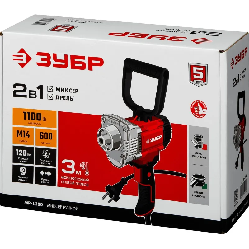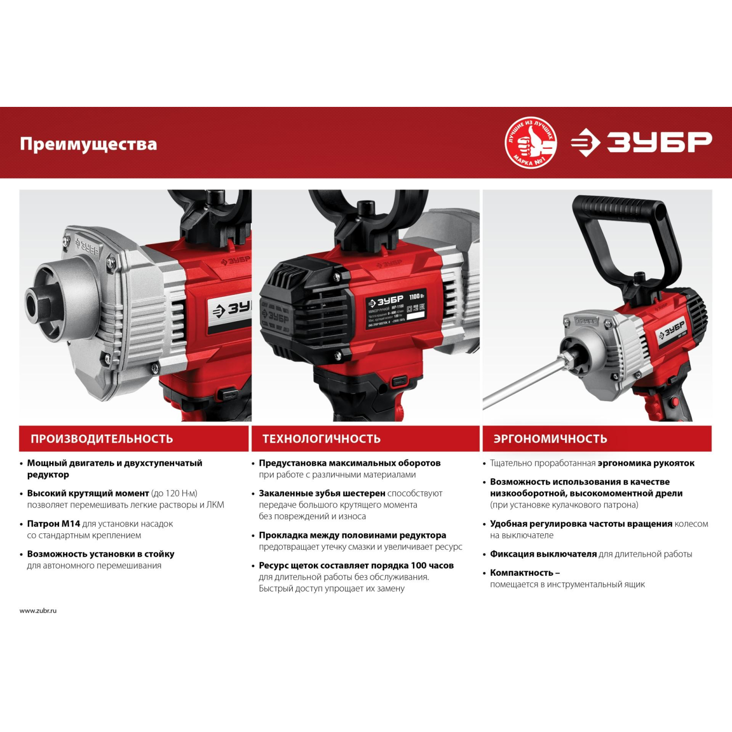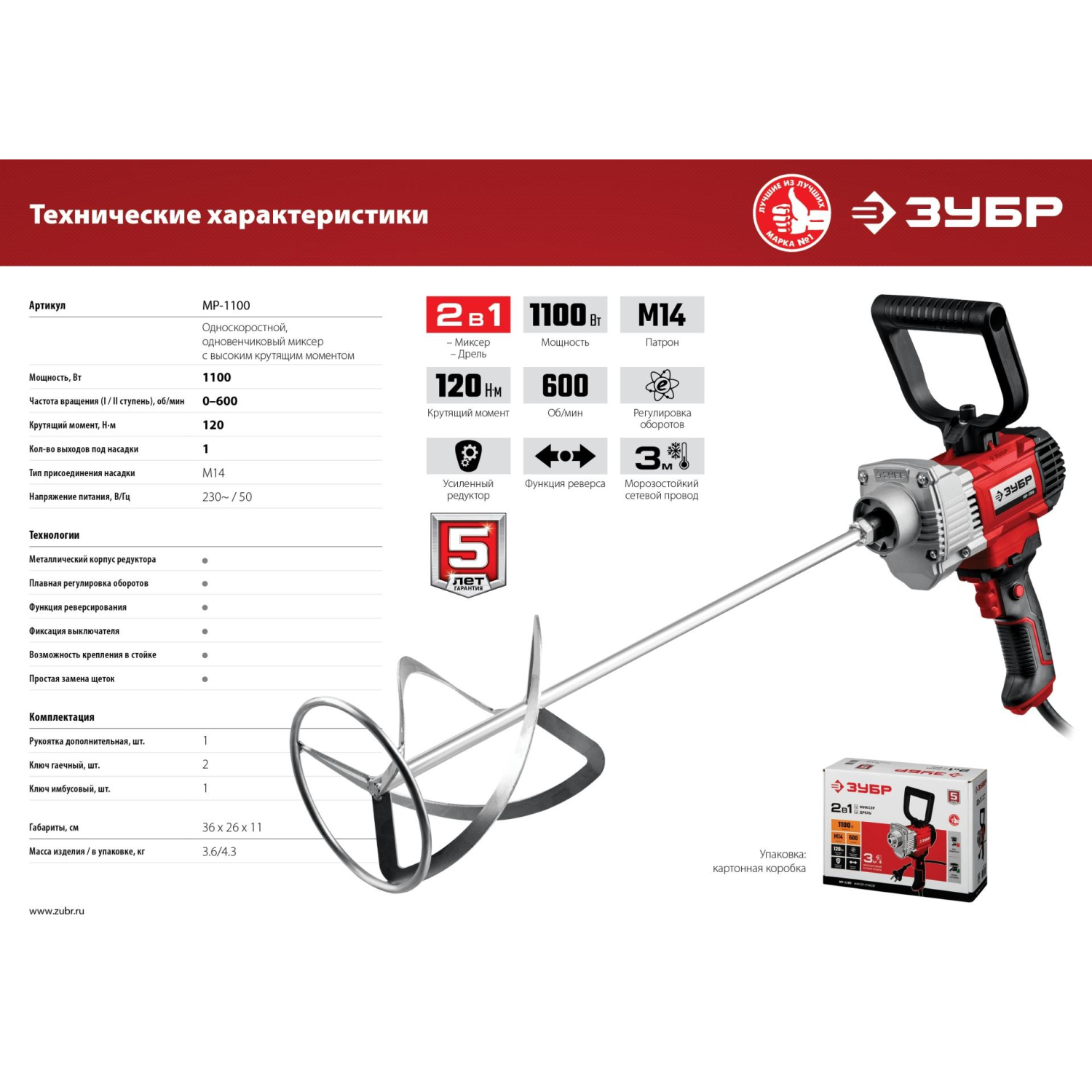 О товаре «Дрель-миксер ЗУБР МР-1100, М14, 1100 Вт»