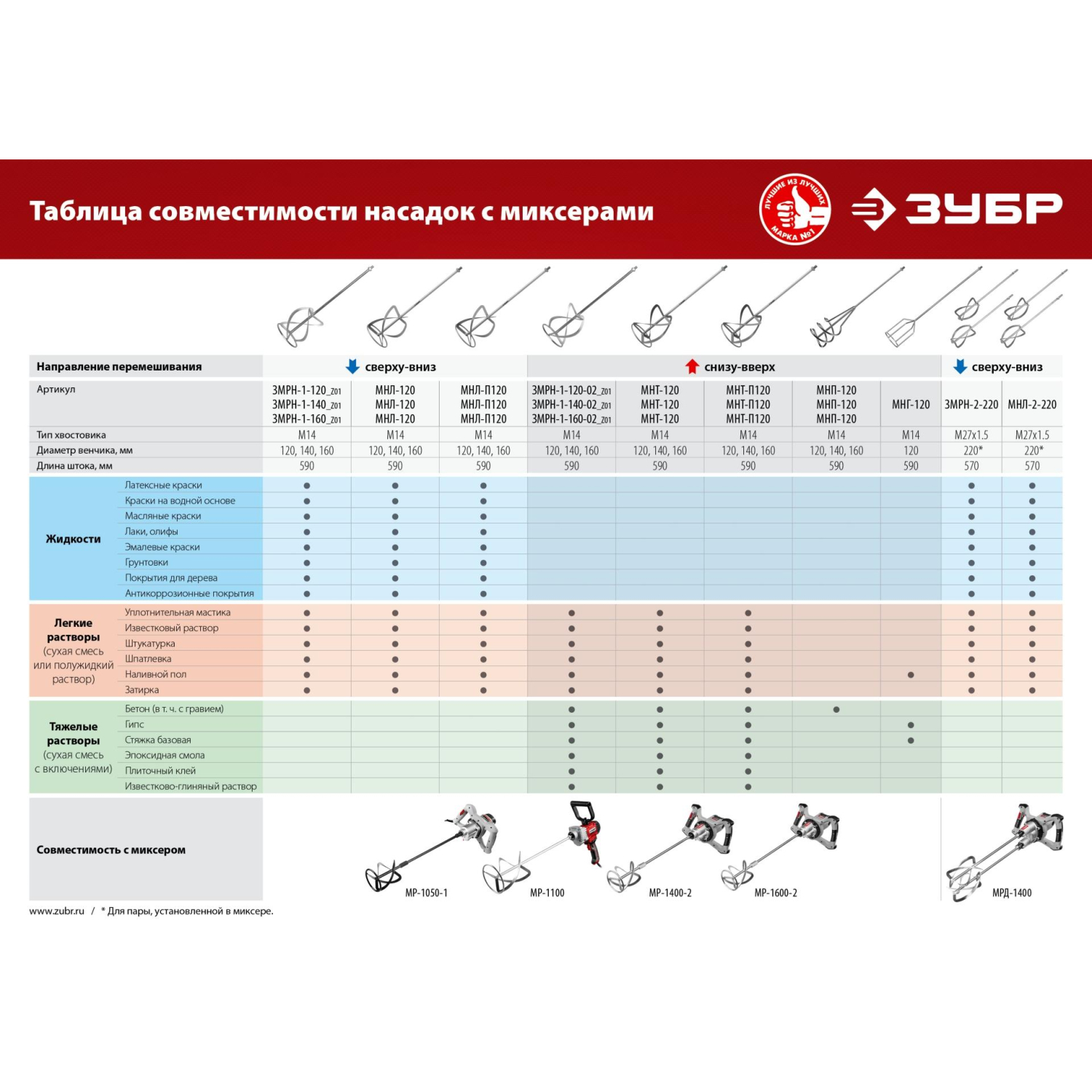 Дрель-миксер ЗУБР МР-1100, М14, 1100 Вт