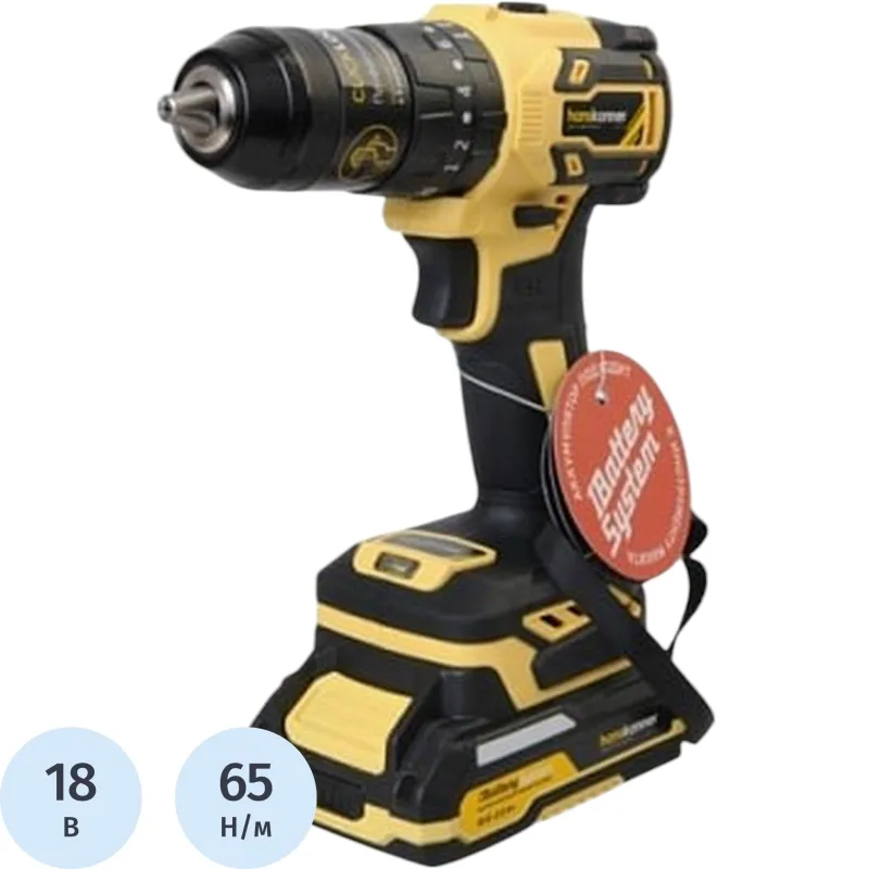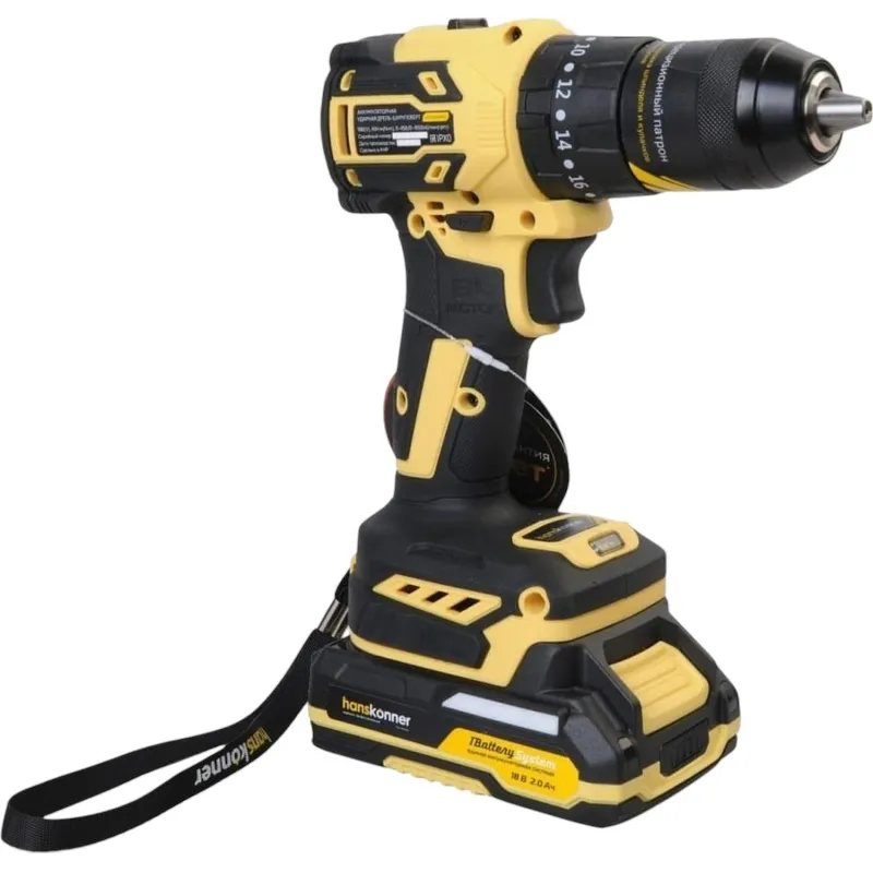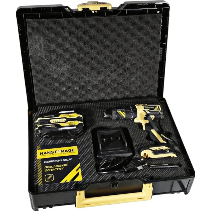 Дрель-шуруповерт ударная аккумуляторная Hanskonner HCD2065PRO бесщеточная 2 АКБ х Li-ion (18В, 2.4 Ач)+ ЗУ в кейсе.