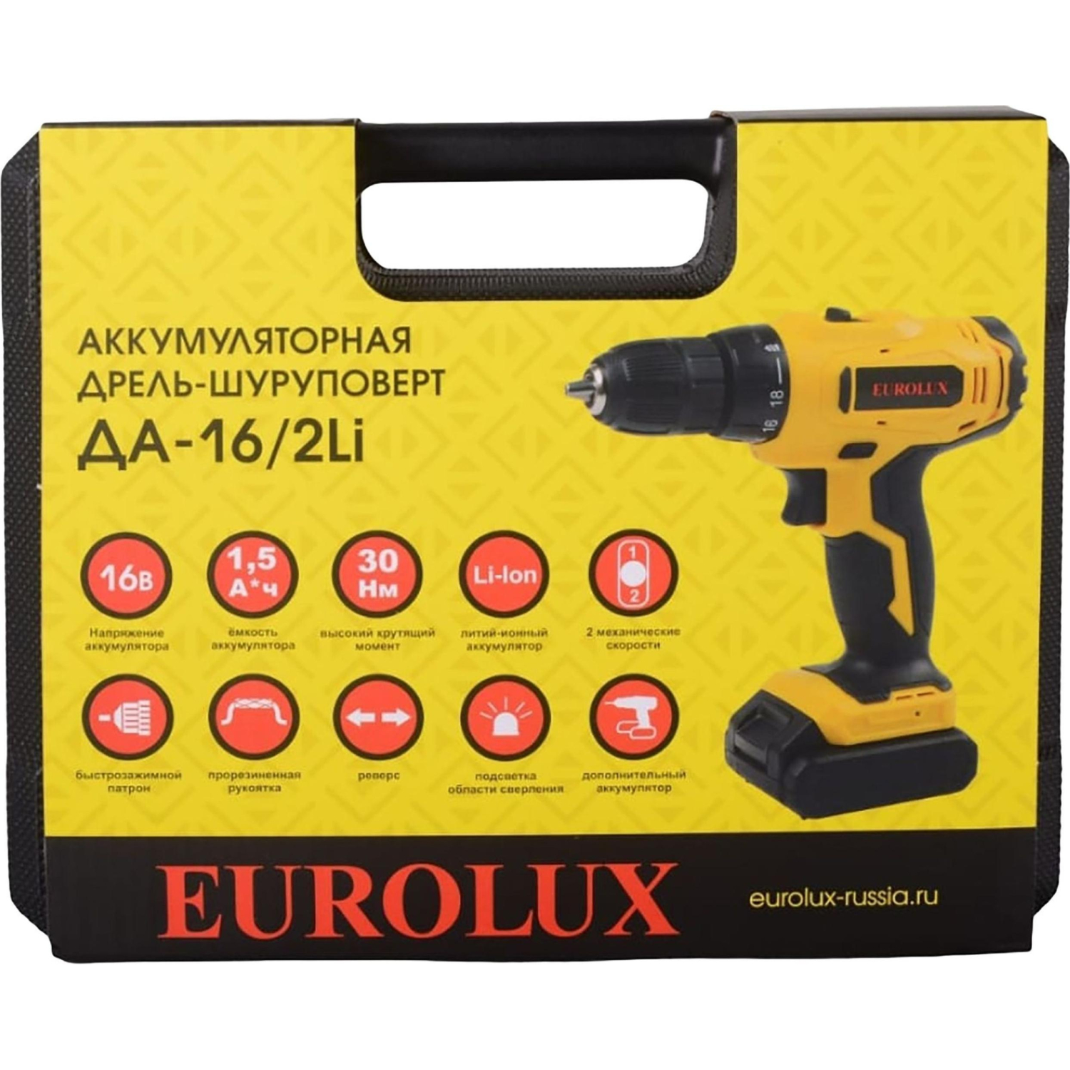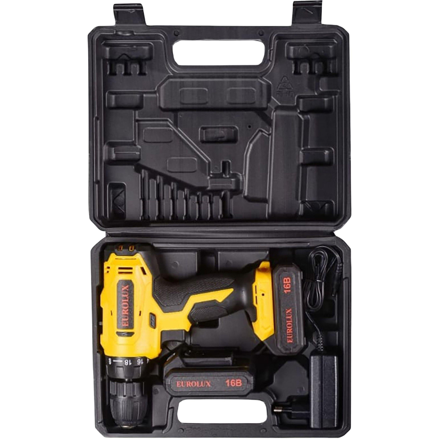 Дрель-шуруповёрт аккумуляторная Eurolux ДА-16/2Li 2 АКБ x Li-ion (16 В, 1.5 Ач)+ЗУ в кейсе (72/14/51)