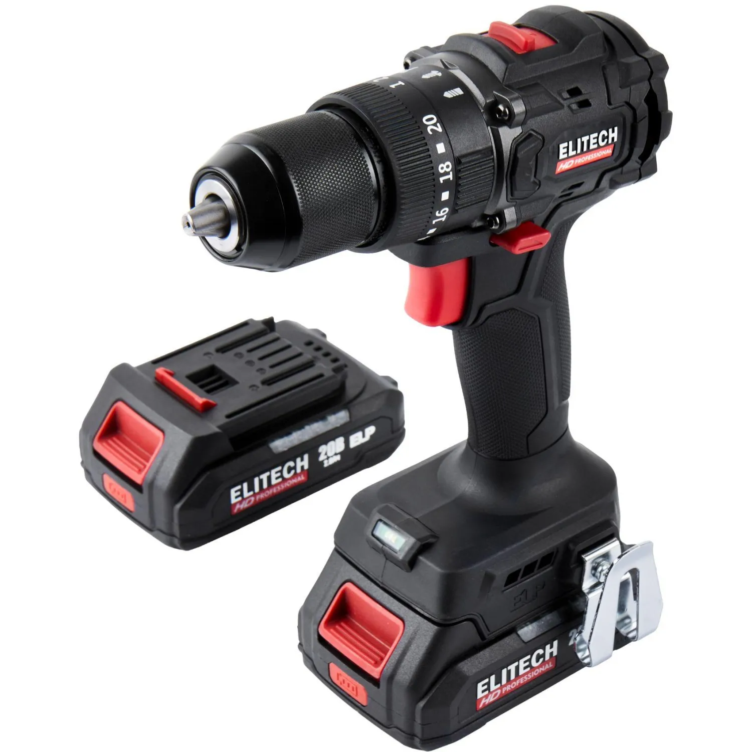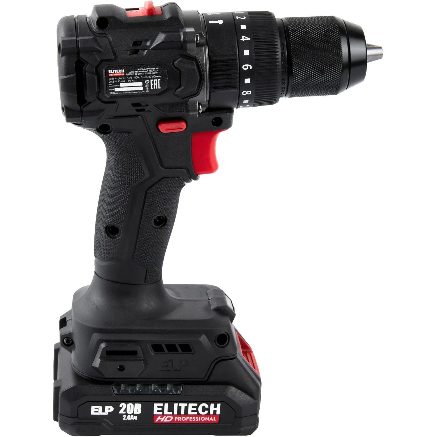 Дрель-шуруповёрт ударная аккумуляторная Elitech HD CD 20ISL2 бесщёточная 2 АКБ х Li-ion (20 В, 2 Ач)+ЗУ в кейсе (E2201.041.01, 205722)