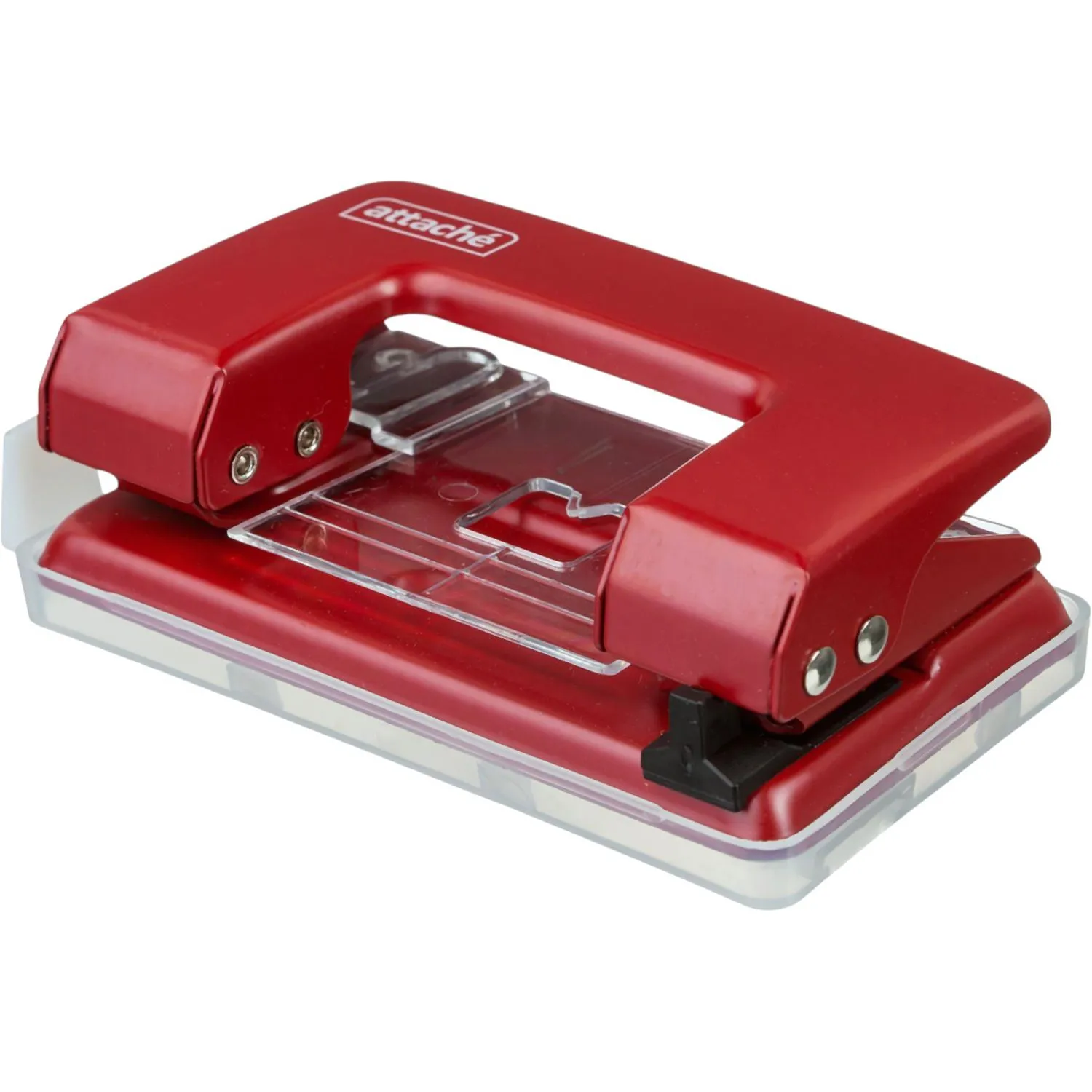 Дырокол Attache — это важный и необходимый предмет для комфортной работы в офисе и дома. Дырокол позволяет сделать отверстия в документах и подшить их в папку с двумя и четырьмя кольцами или в скоросшиватель. Корпус дырокола классического дизайна и выполнен из высококачественного металла красного цвета. Работает с документами толщиной до 12 листов плотностью 80 г/кв.м. Дырокол пробивает два отверстия диаметром 5.5 мм, расстояние между отверстиями — 80 мм. Пробойники дырокола изготовлены из высококачественного металла, что позволит им прослужить дыроколу долго и без сложностей пробивать листы бумаги. Удобный контейнер для конфетти легко открывается и закрывается, исключая его рассыпание. Наличие линейки позволяет зафиксировать бумагу на нужном расстоянии и пробить отвестия в бумаге разного формата: А4, А6, А5. Имеет метку центрирования.