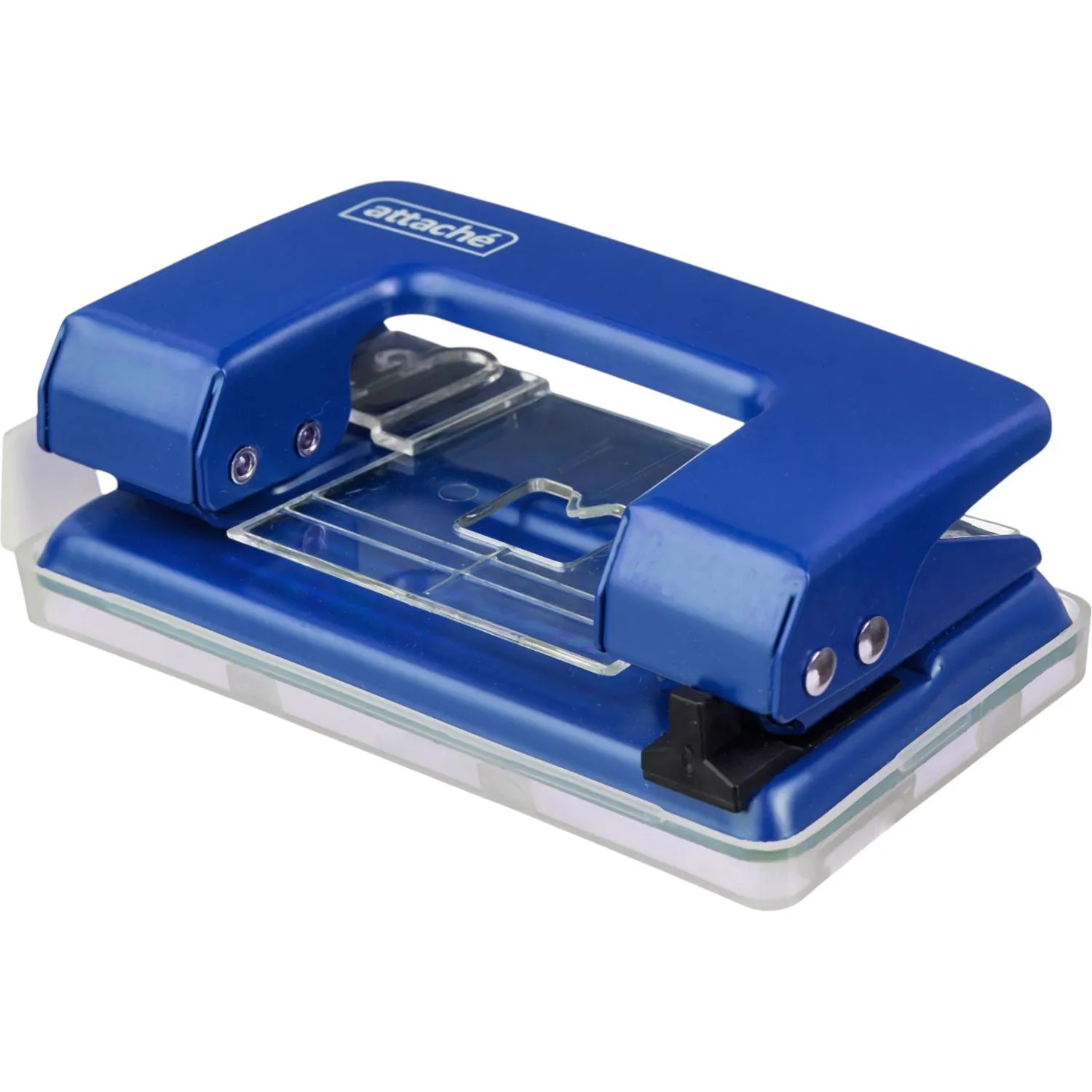 Дырокол Attache — это важный и необходимый предмет для комфортной работы в офисе и дома. Дырокол позволяет сделать отверстия в документах и подшить их в папку с двумя и четырьмя кольцами или в скоросшиватель. Корпус дырокола классического дизайна и выполнен из высококачественного металла синего цвета. Работает с документами толщиной до 12 листов плотностью 80 г/кв.м. Дырокол пробивает два отверстия диаметром 5.5 мм, расстояние между отверстиями — 80 мм. Пробойники дырокола изготовлены из высококачественного металла, что позволит им прослужить дыроколу долго и без сложностей пробивать листы бумаги. Удобный контейнер для конфетти легко открывается и закрывается, исключая его рассыпание. Наличие линейки позволяет зафиксировать бумагу на нужном расстоянии и пробить отвестия в бумаге разного формата: А4, А6, А5. Имеет метку центрирования.