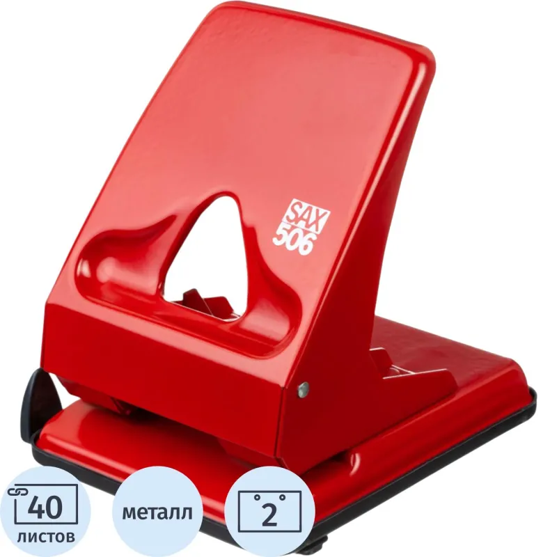 О товаре «Дырокол Sax 506 до 40 листов красный с линейкой»