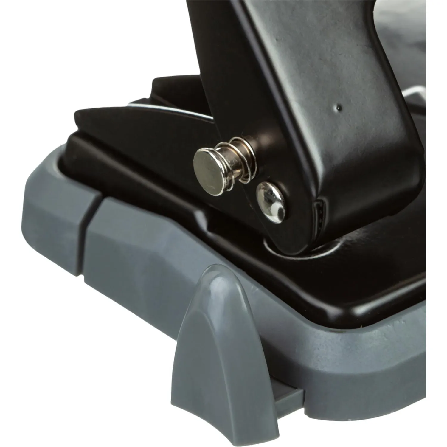 Дырокол Attache — это важный и необходимый предмет для комфортной работы в офисе и дома. Дырокол позволяет аккуратно перфорировать документы, чтобы подшить их в папку с двумя и четырьмя кольцами или в скоросшиватель. Современный дизайн и универсальный черный цет металлического корпуса отлично впишутся в любой офисный интерьер. Специальная резиновая вставка на корпусе не позволяет рукам скользить во время работы. Одним нажатием возможно пробить отверстия в документе толщиной до 25 листов плотностью 80 г/кв.м. Дырокол делает два отверстия диаметром 6 мм, расстояние между отверстиями — 80 мм. Пробойники дырокола изготовлены из высококачественного металла, что позволит им прослужить дыроколу долго и без сложностей пробивать листы бумаги. Удобный контейнер для конфетти легко открывается и закрывается, исключая его рассыпание. Наличие линейки с делениями позволяет зафиксировать бумагу на нужном расстоянии и пробить отвестия в бумаге в соответствии с ее размером. Удобно работать с форматами A3, A4, A5, A6, B4, B5, B6. Отметка на линейке 888 позволяет использовать также как дырокол на 4 отверстия. Дырокол имеет кнопку фиксации в закрытом виде, что позволяет экономить рабочего пространство.