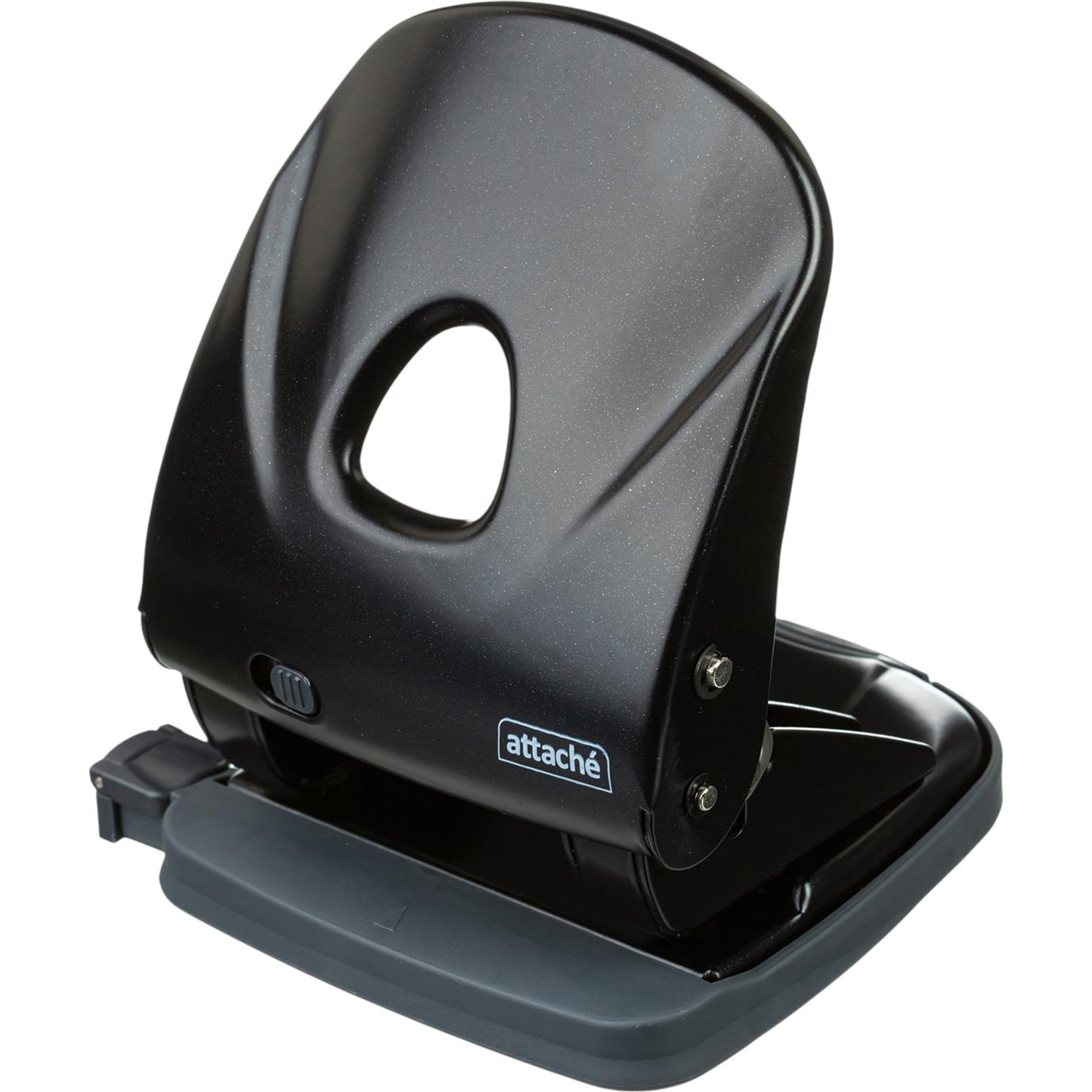 Дырокол Attache Power до 30 листов черный с линейкой