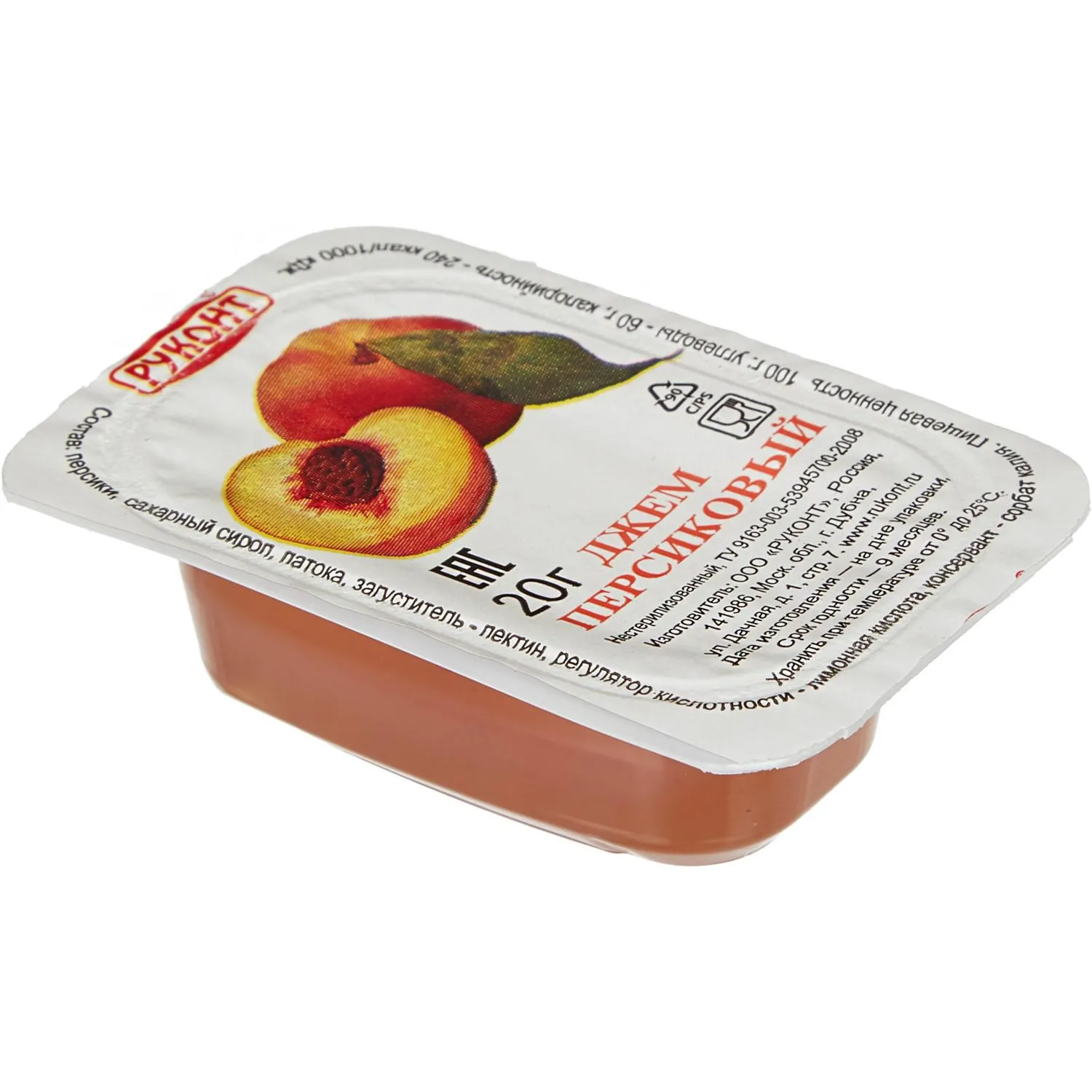 О товаре «Джем порционный Руконт персик 20 г (20 штук в упаковке)»