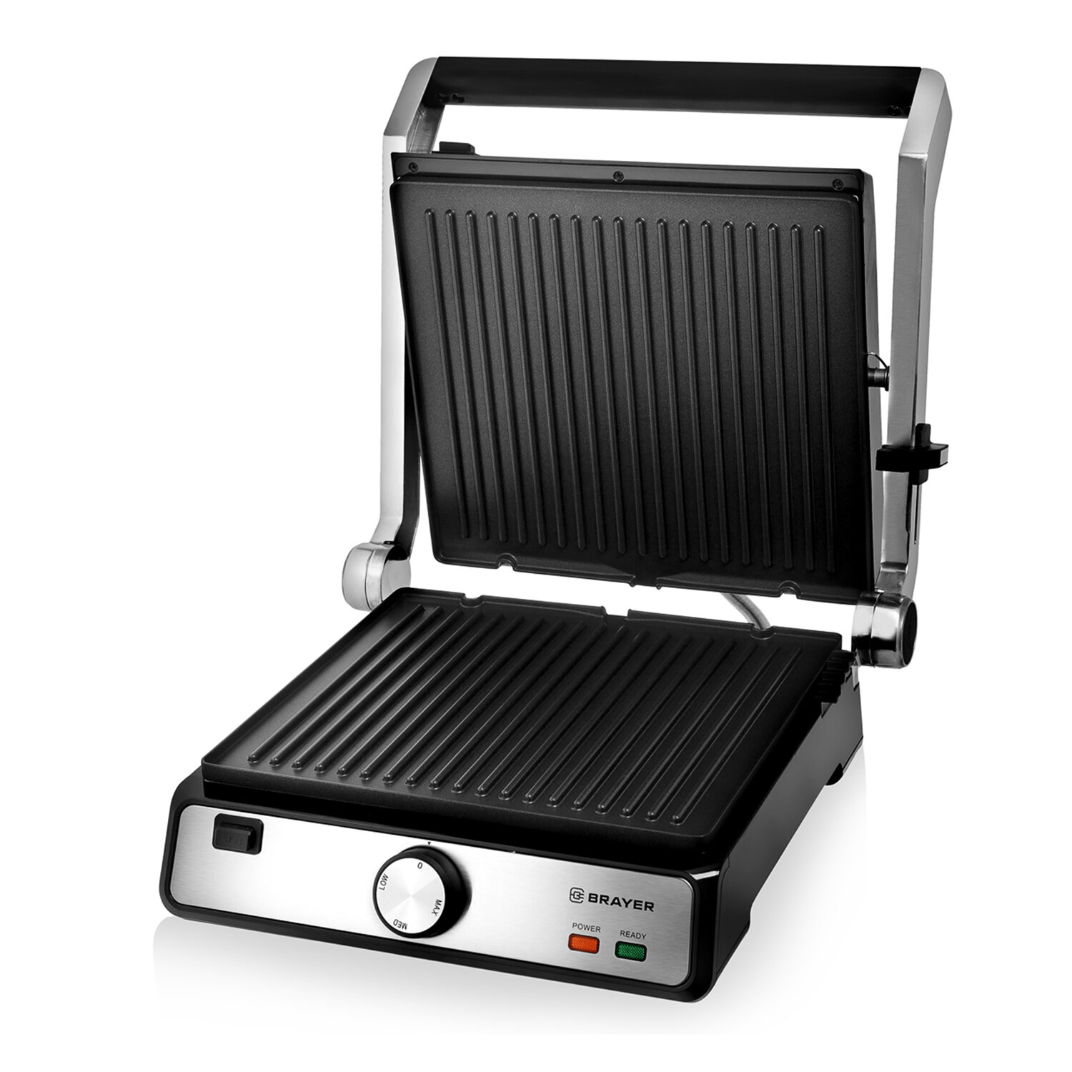 О товаре «Электрогриль BRAYER BR2002, 2000 Вт, съемные панели, регулировка температуры, серебро/черный»