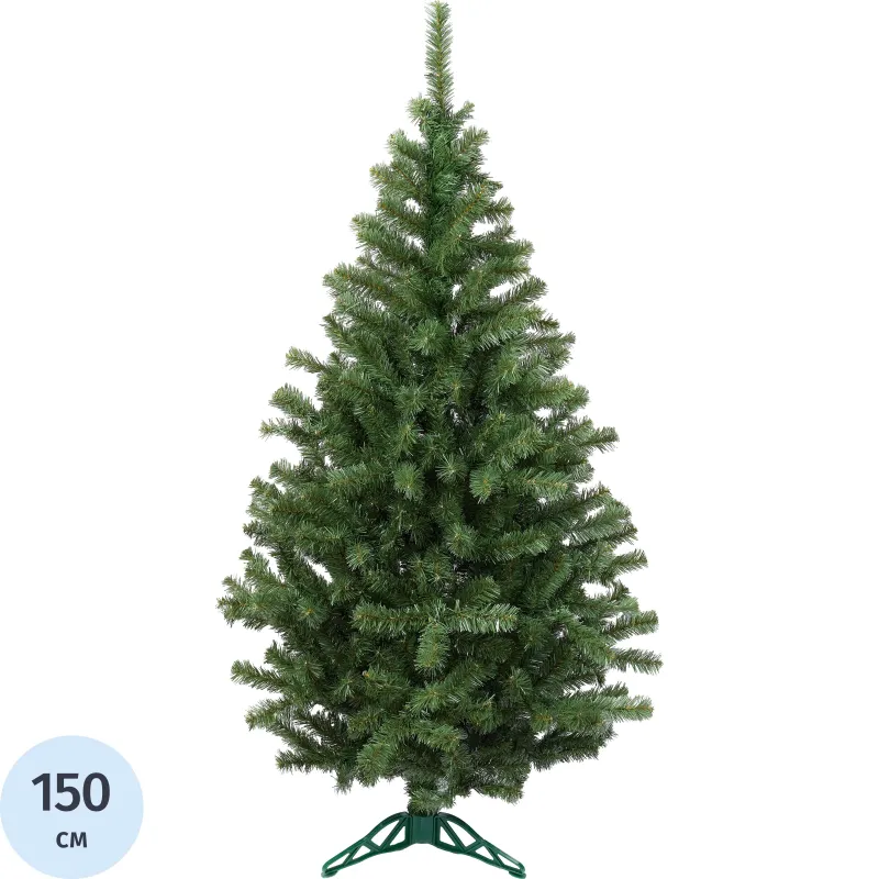 Элегантная напольная ёлка высотой 1.5 метра, станет ярким акцентом вашего новогоднего интерьера. Модель выполнена из ПВХ с 472 ветвяами и 13 ярусами, что обеспечивает насыщенную и реалистичную зелёную крону. Конструкция разборная, сборка осуществляется по инструкции, входящей в комплект.