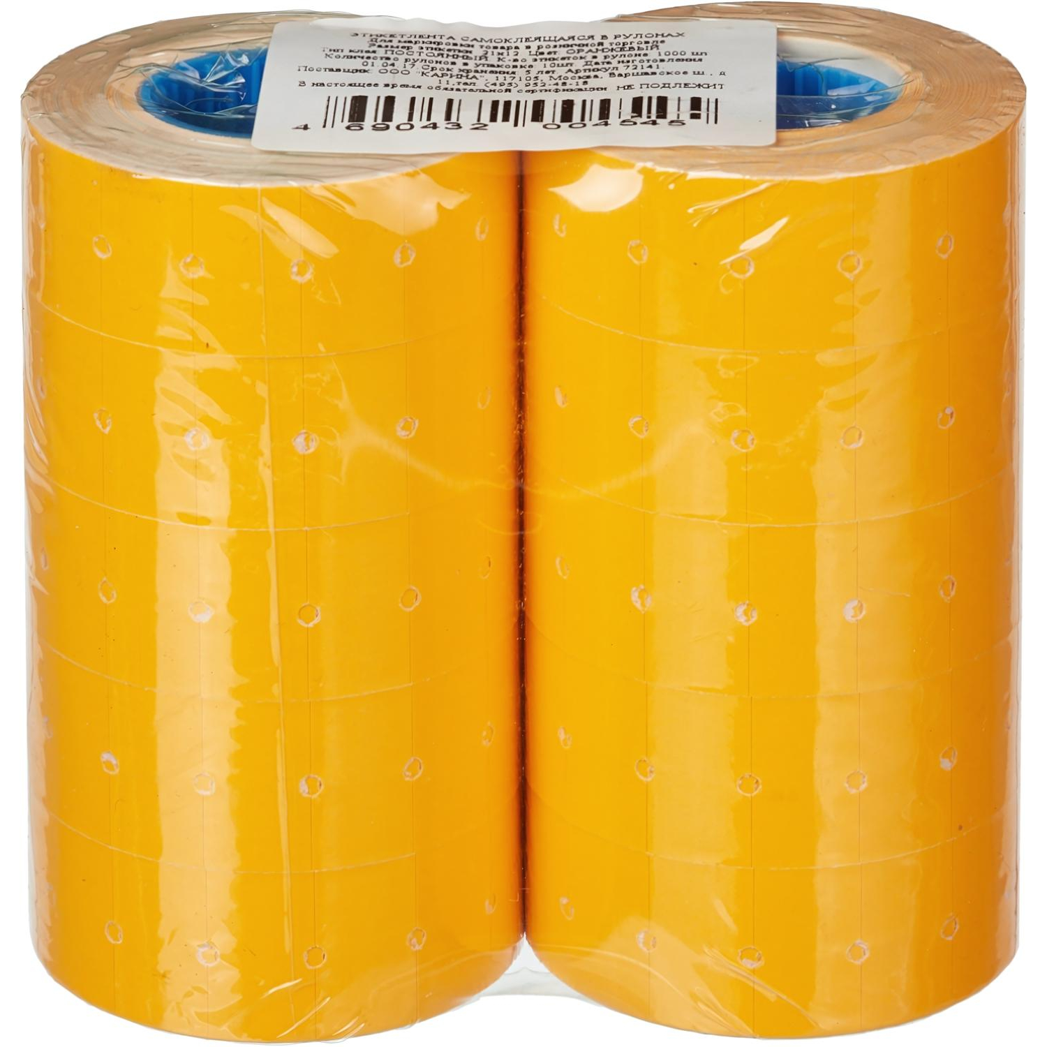 О товаре «Этикет-лента прямоугольная оранжевая 21.5х12 мм стандарт (10 рулонов по 1000 этикеток)»