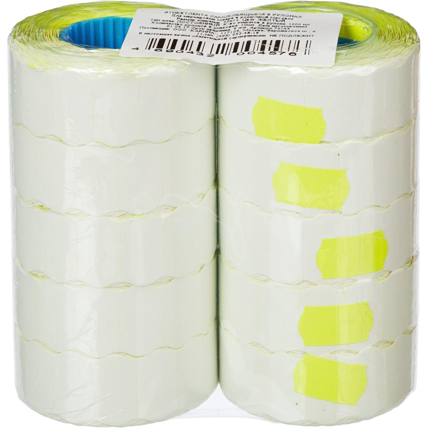 Этикет-лента волна желтая 22х12 мм стандарт (10 рулонов по 1000 этикеток)